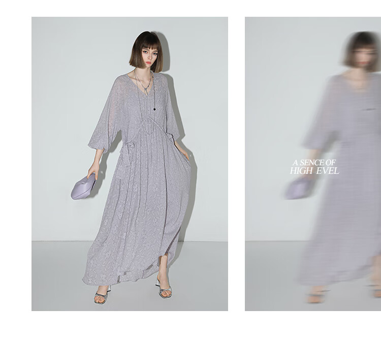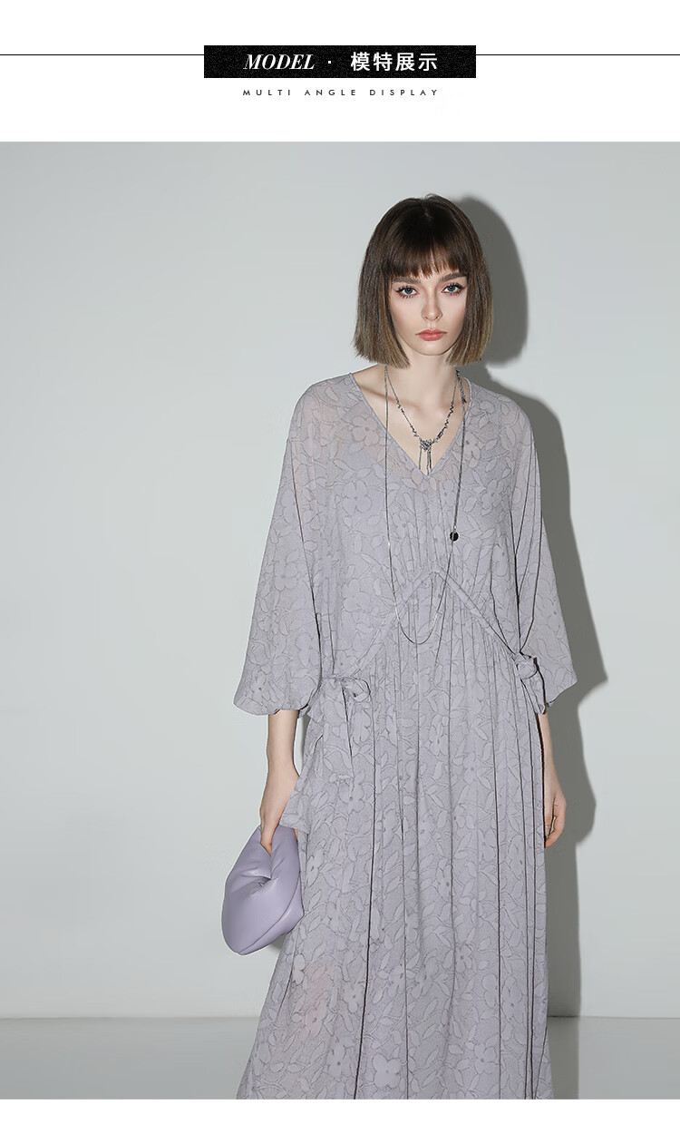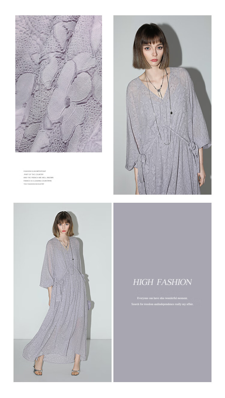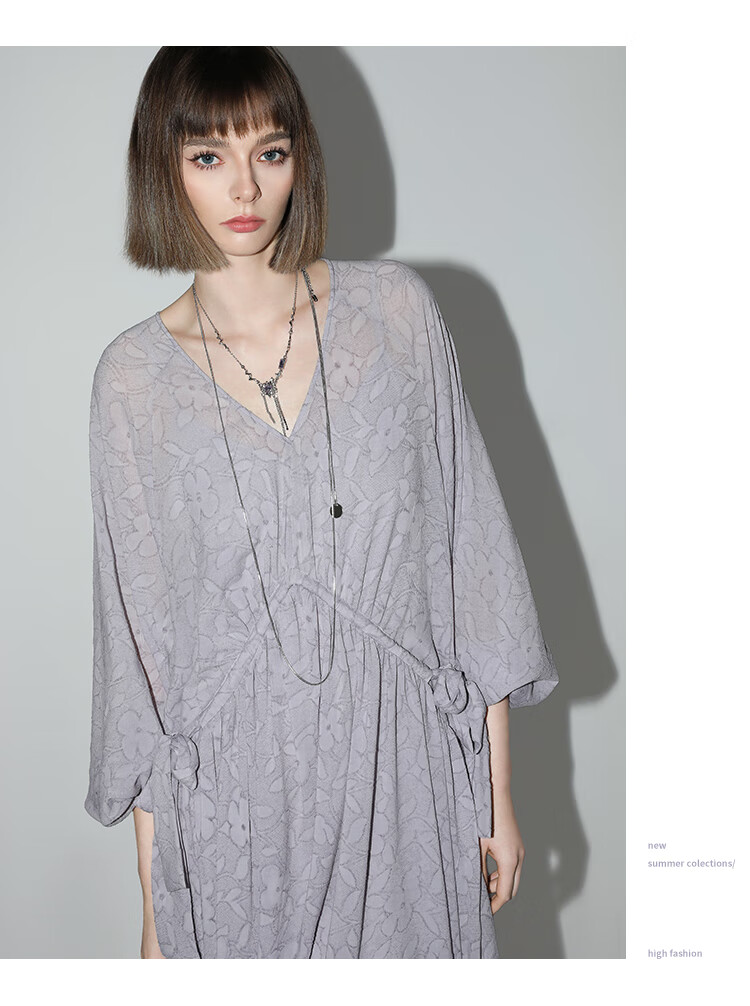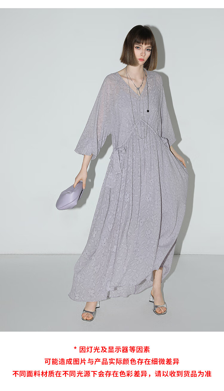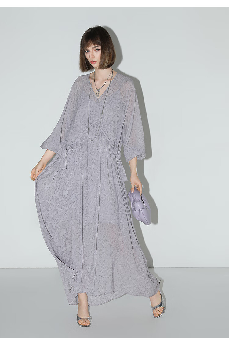 COCOBELLA莫奈紫肌理浮雕压花抽绳连衣裙雪纺裙两件套FR7049
