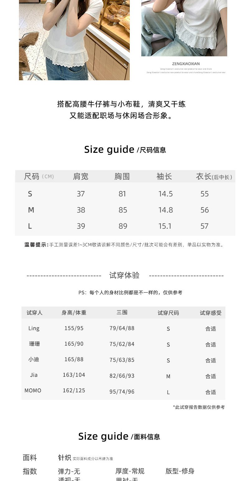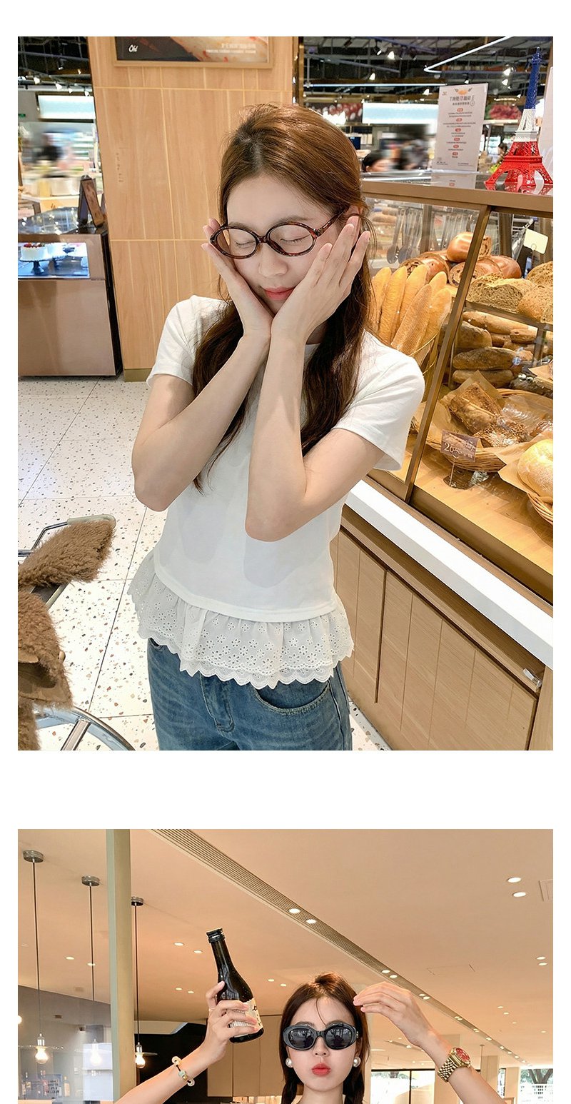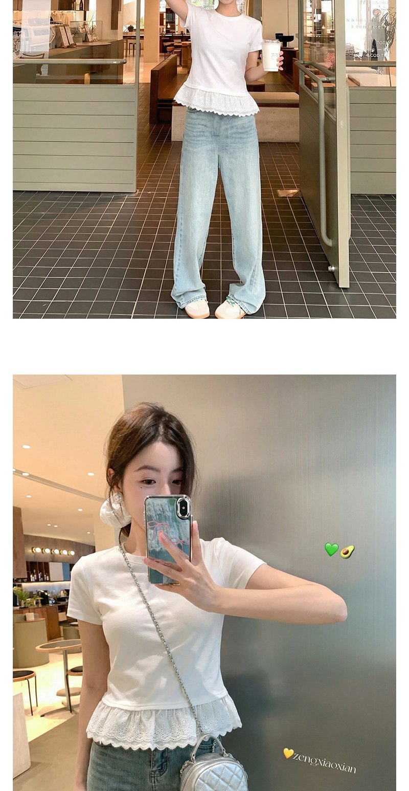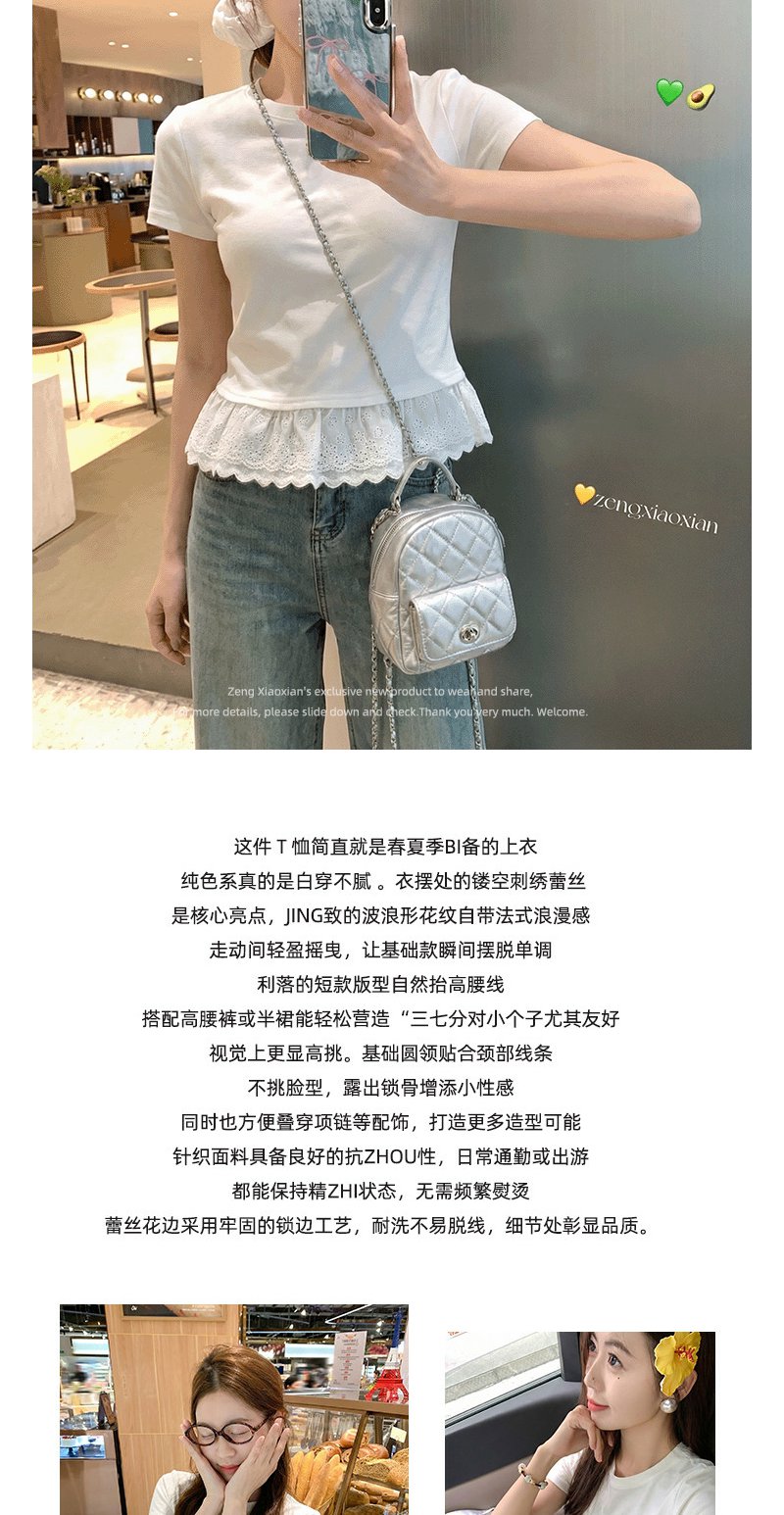 <曾小咸推荐>韩系蕾丝边白色短袖t恤上衣