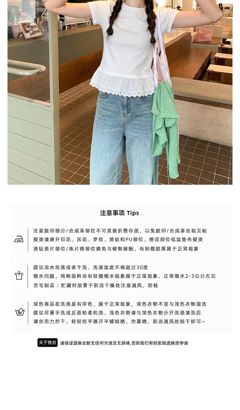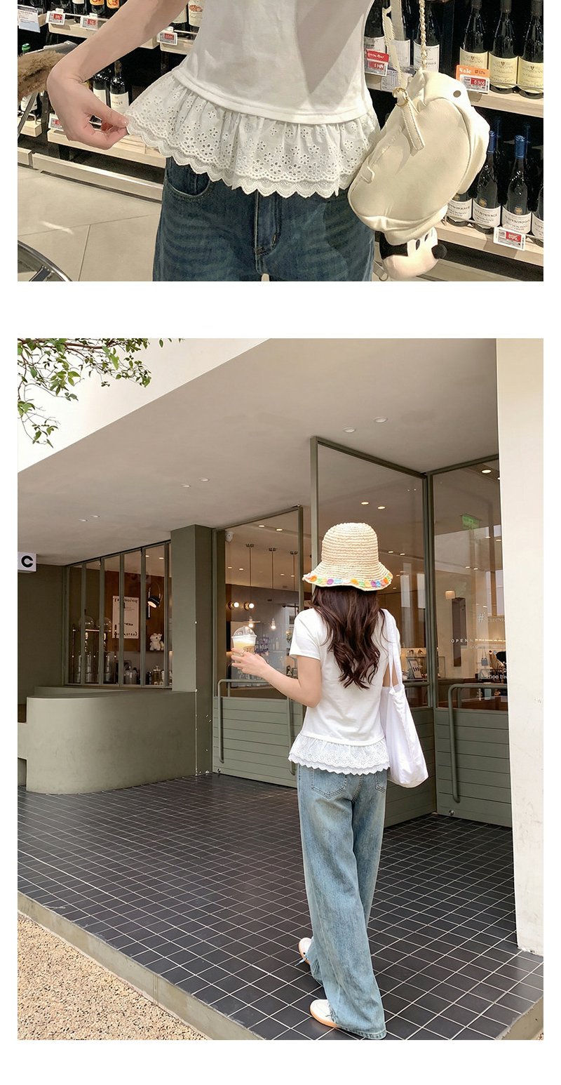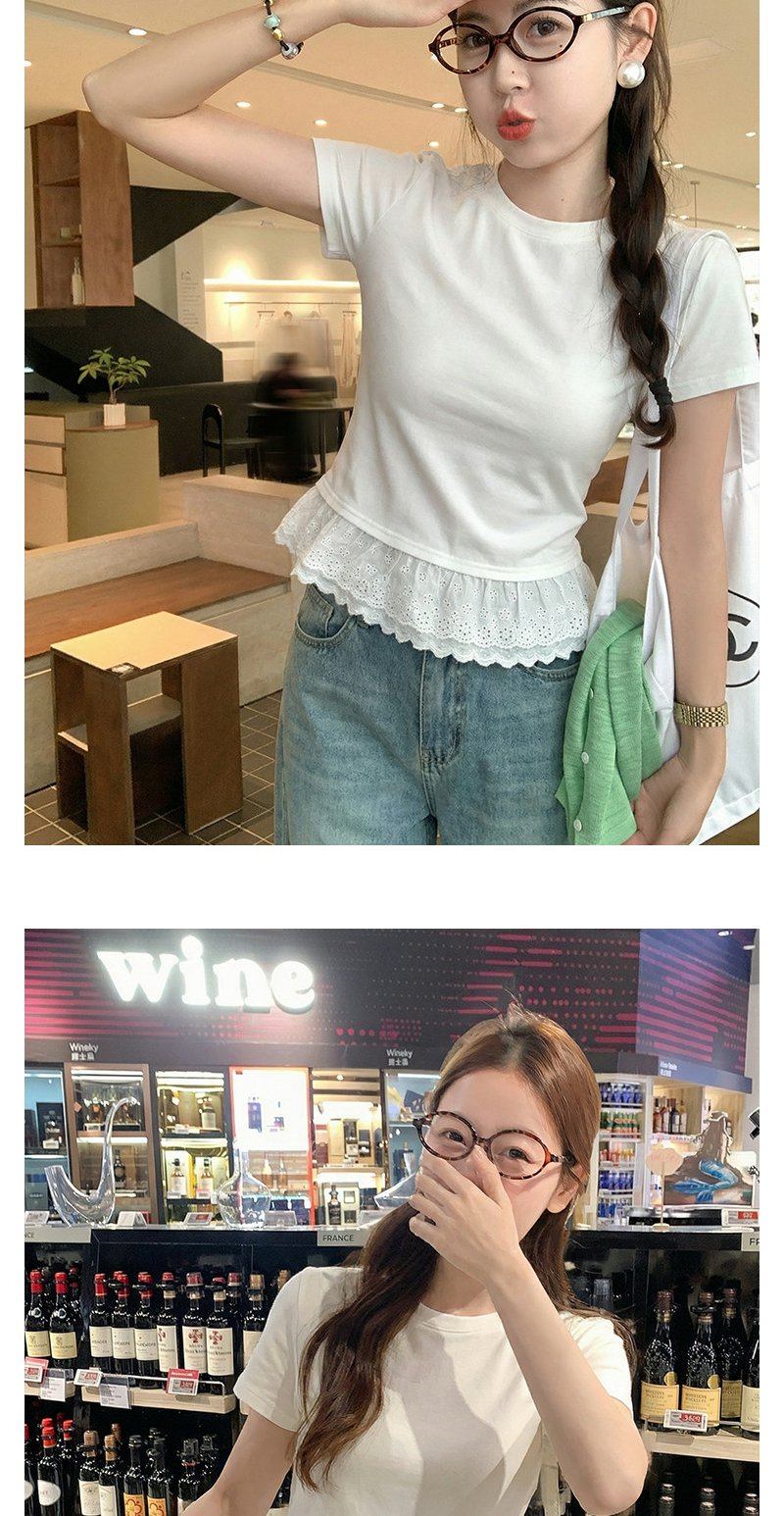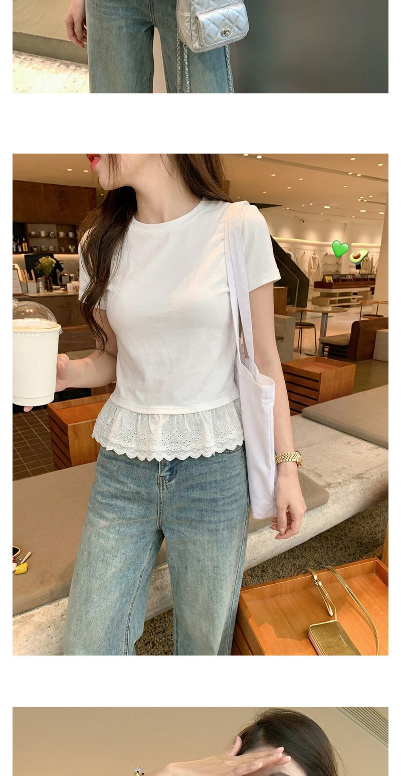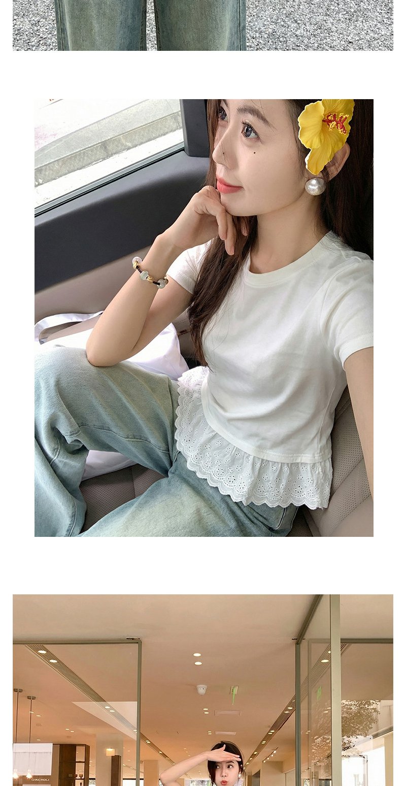 <曾小咸推荐>韩系蕾丝边白色短袖t恤上衣