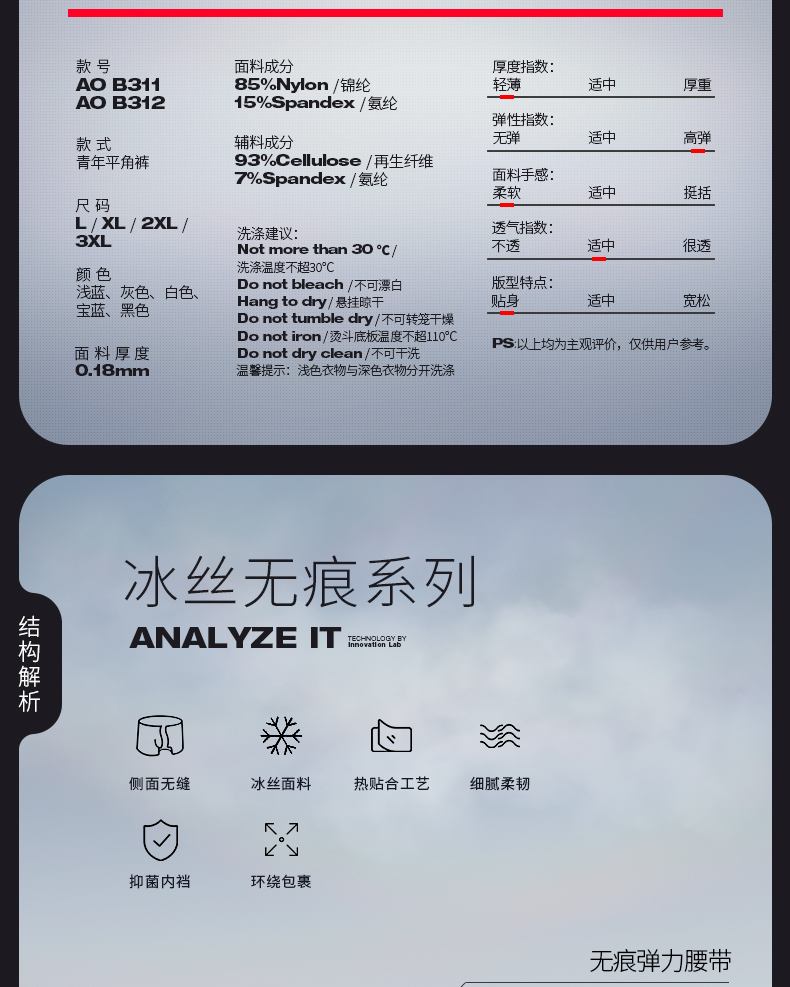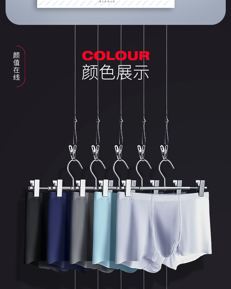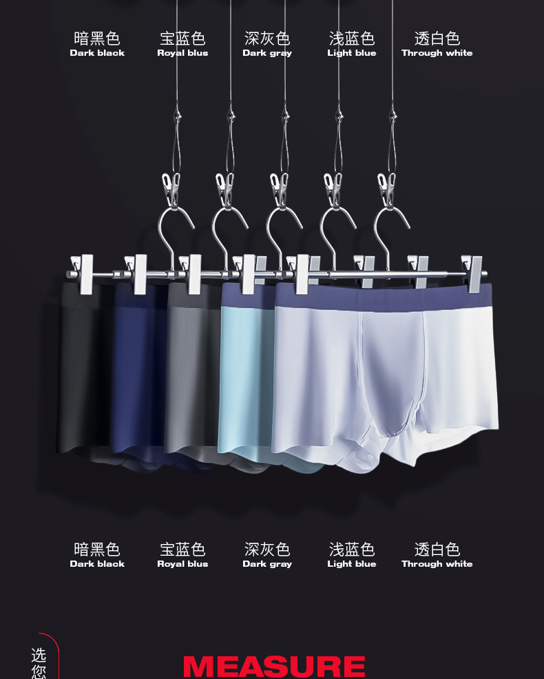 【黑科技面料 让你冰凉一“夏”】新款男士冰丝无痕内裤 冰感面料、透气干爽 舒适轻薄 男士平角内裤 三条装