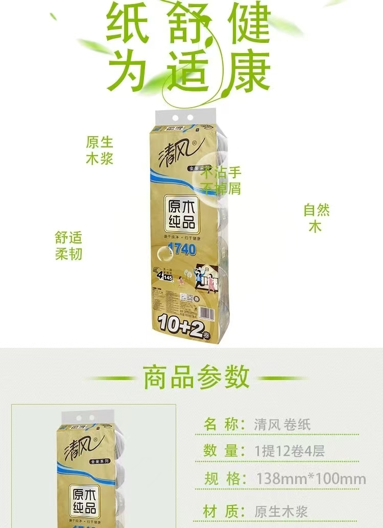 清风 原木金装卷纸(4层145克/卷*12卷)