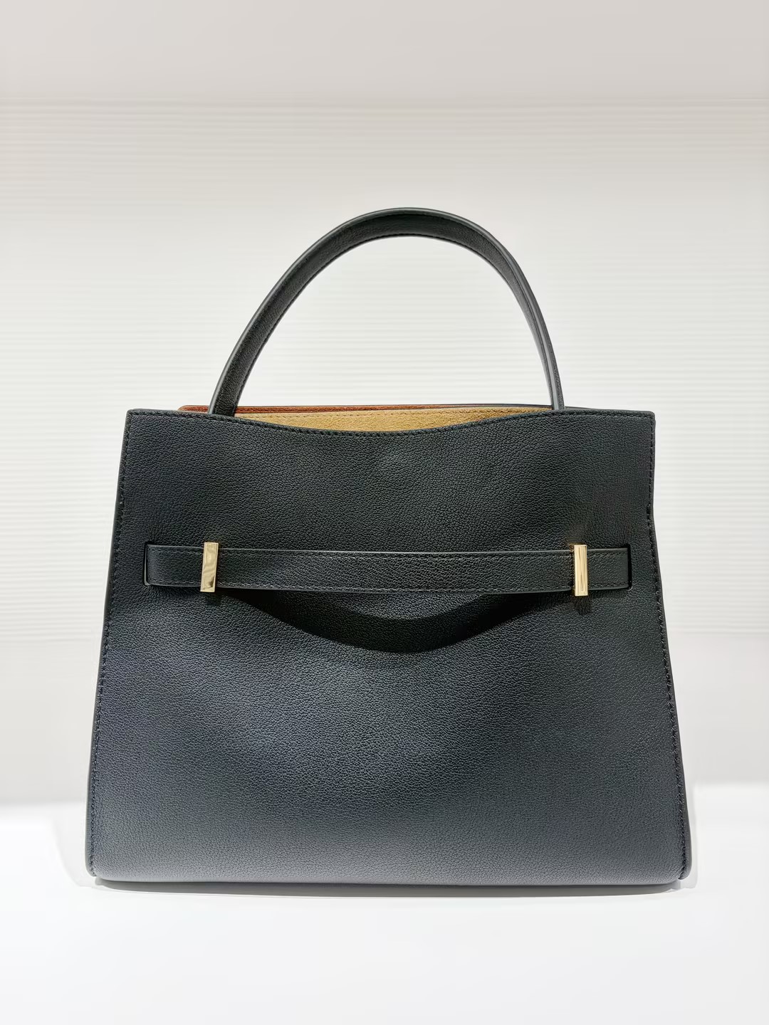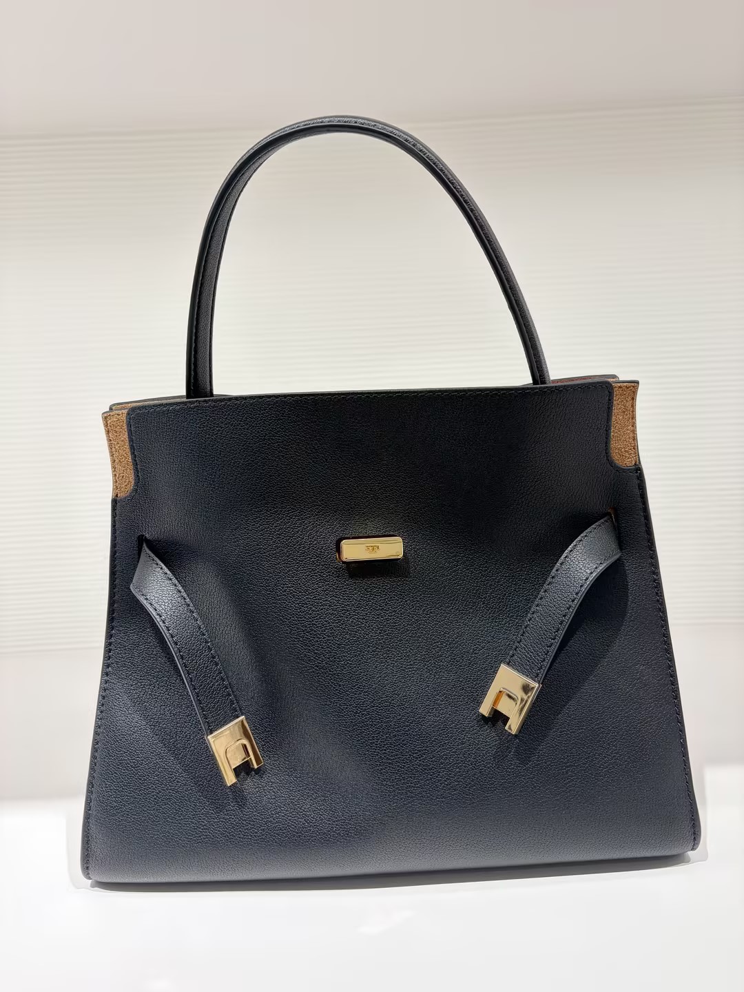 Lee Radziwill托特包,精选耐用压花羊皮打造而成,手感柔软,表面呈现半哑光效果。内设三个隔层,便于收纳整理,并饰以标志性的 T型锁扣带。该系列以Lee Radziwill女士命名,她勇敢无畏,自成一派。