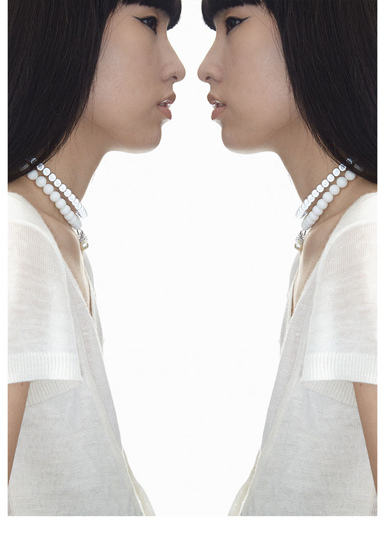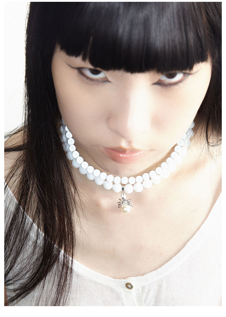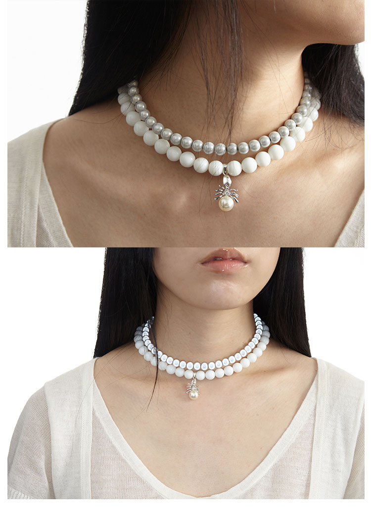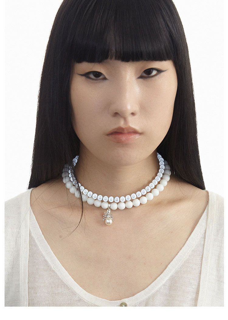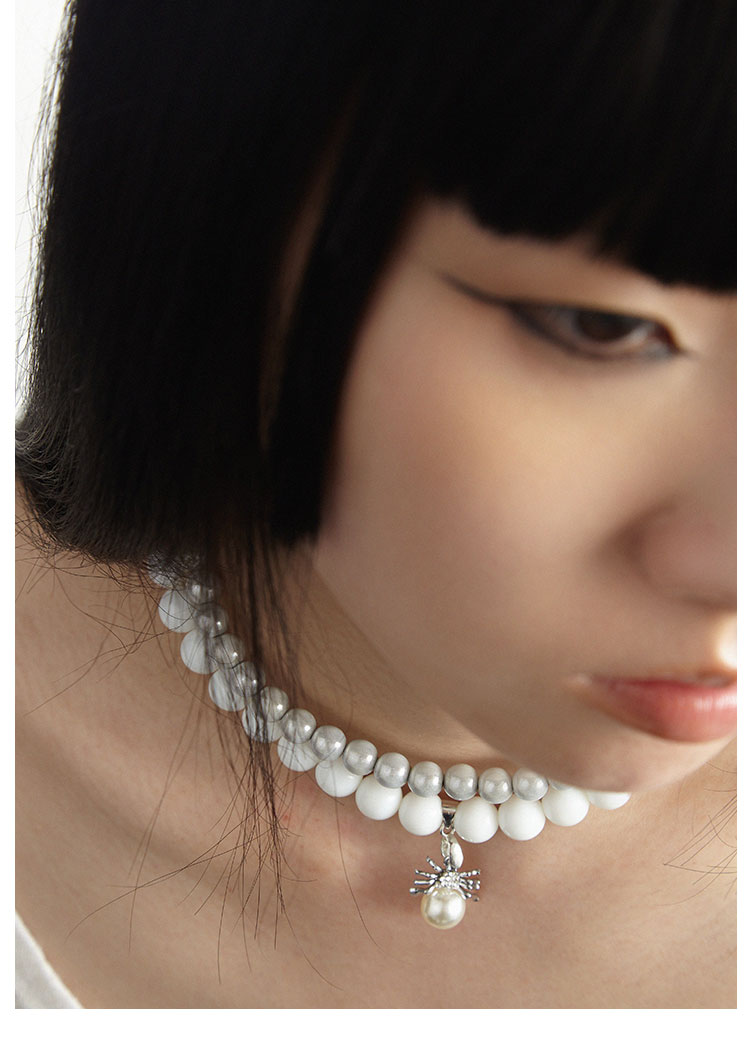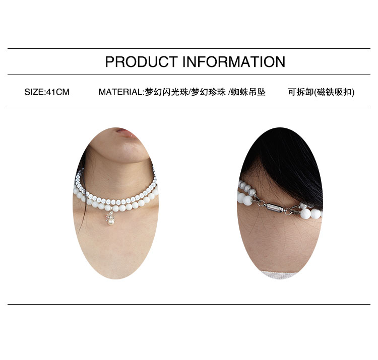QZC2000 金属蜘蛛吊坠梦幻反光珍拼接白珍珠磁铁吸扣项链男女饰品