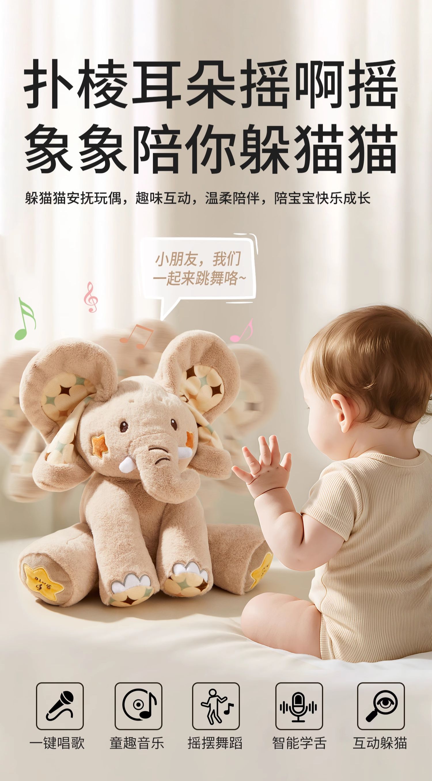 科巢躲猫猫大象玩具会学说话0-1岁婴儿抬头练习宝宝玩偶儿童周岁礼物