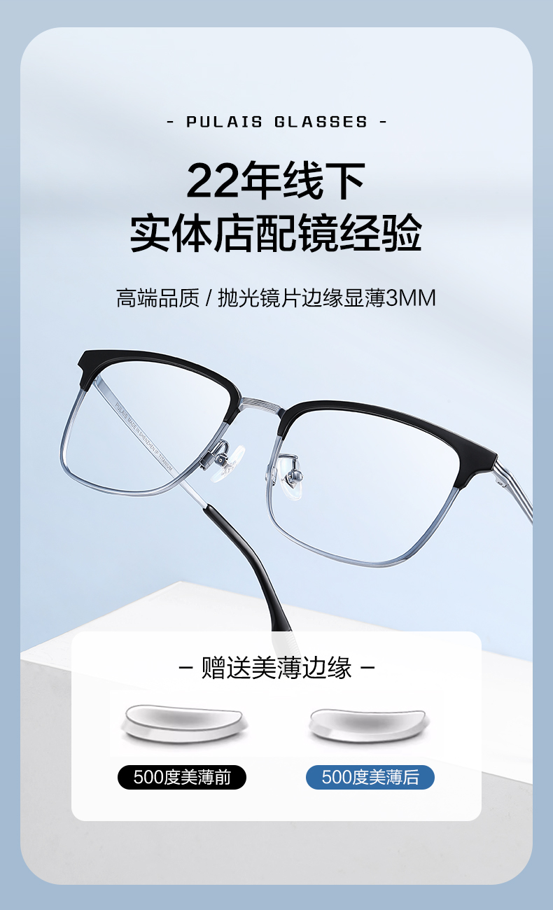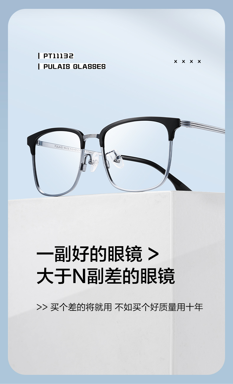 普莱斯光学镜架PT11132 β钛+板材 时尚简约 三色可选