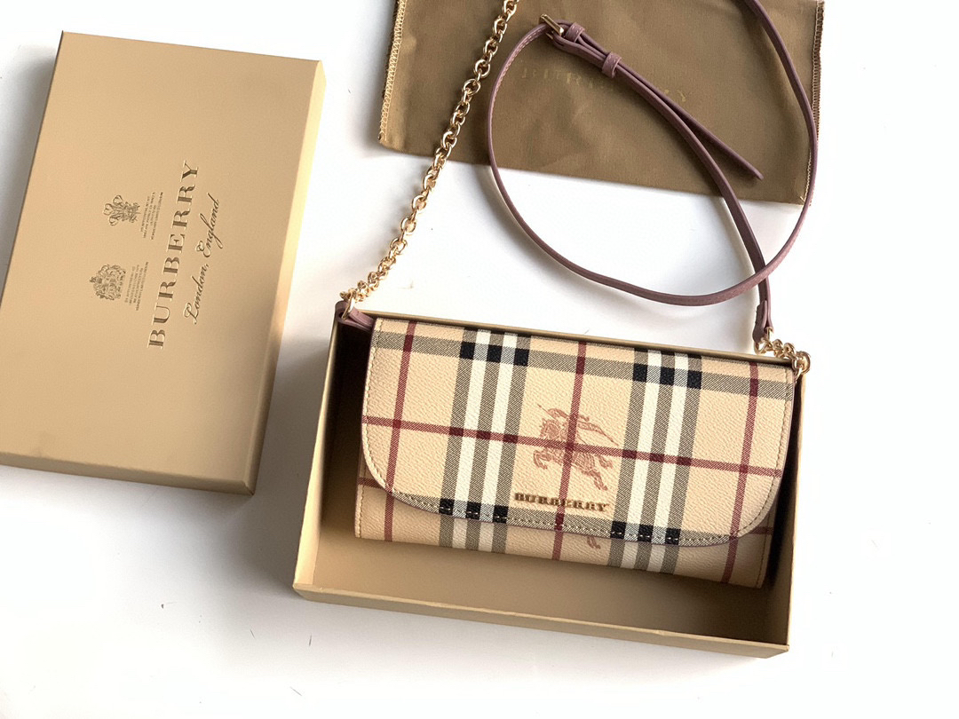 Haymarket格纹拼皮革斜背包➰【B•家】原单出品🇮🇹~~🎉👉随附链饰皮革肩背带。本品可作为小型手袋单独使用,或作为钱夹收置于日常手袋内。👍专柜品质、做工精细💋实物拍摄📷,粉紫,尺寸21cm*12cm*3cm