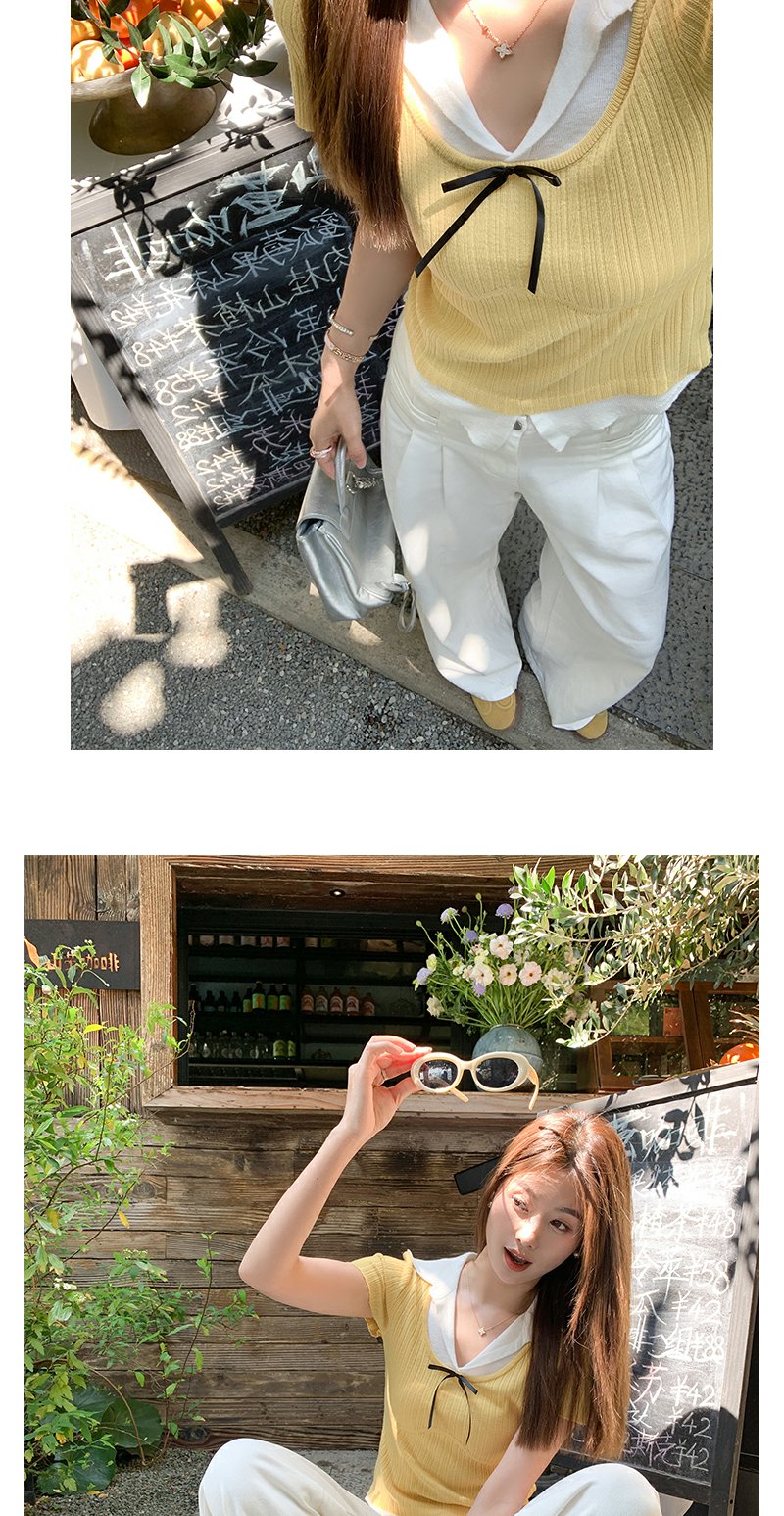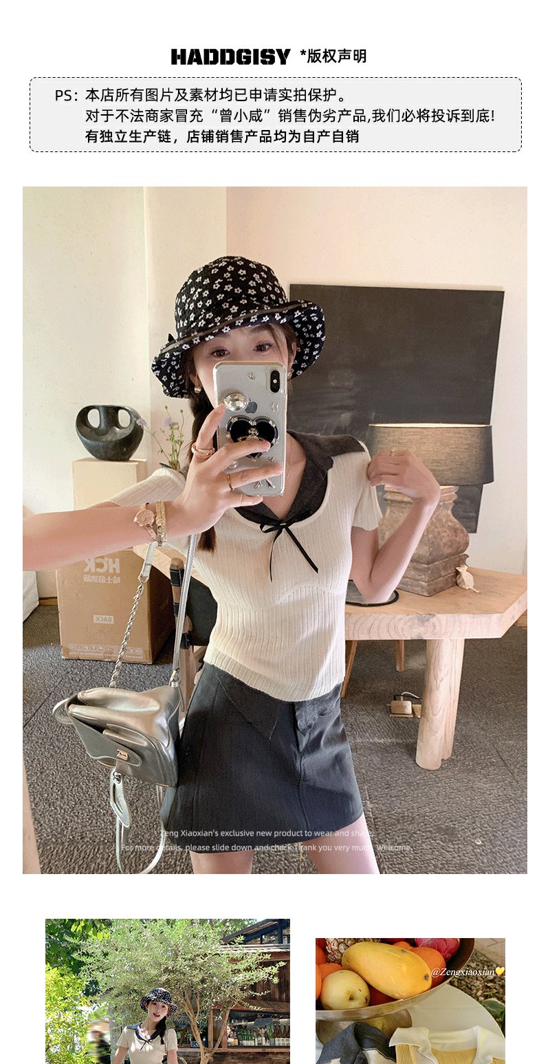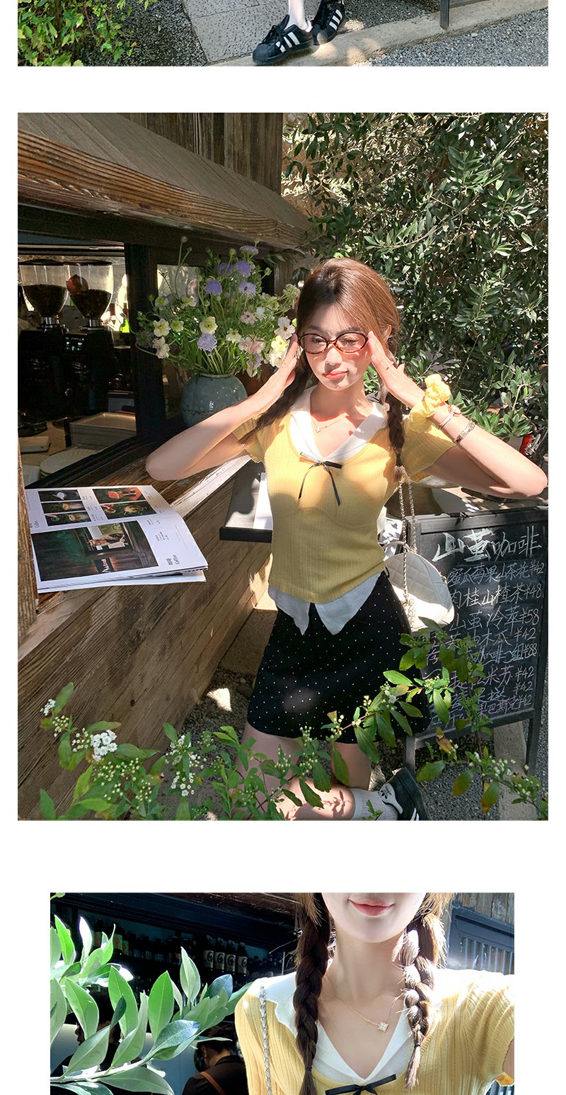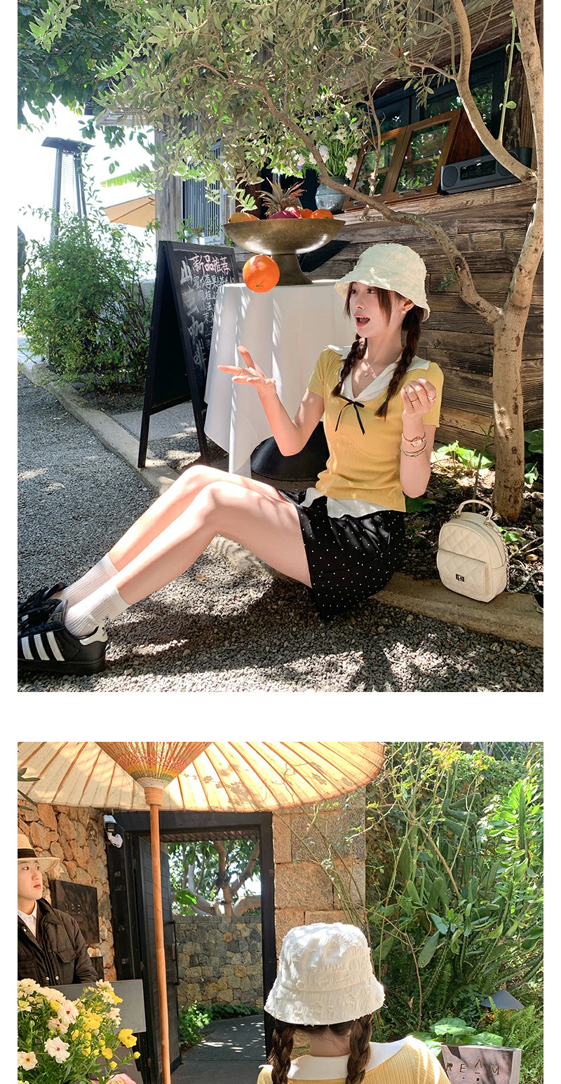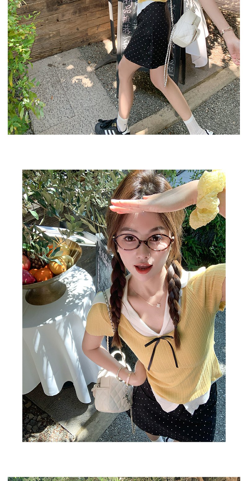<曾小咸推荐>波点蝴蝶结系带短袖T恤上衣【预售7-15天发货】