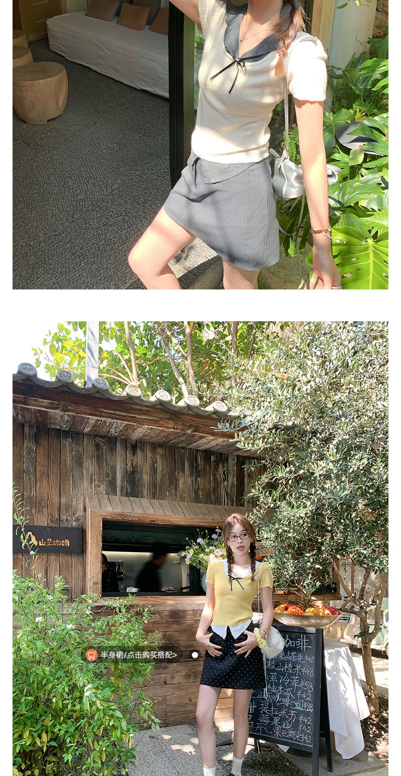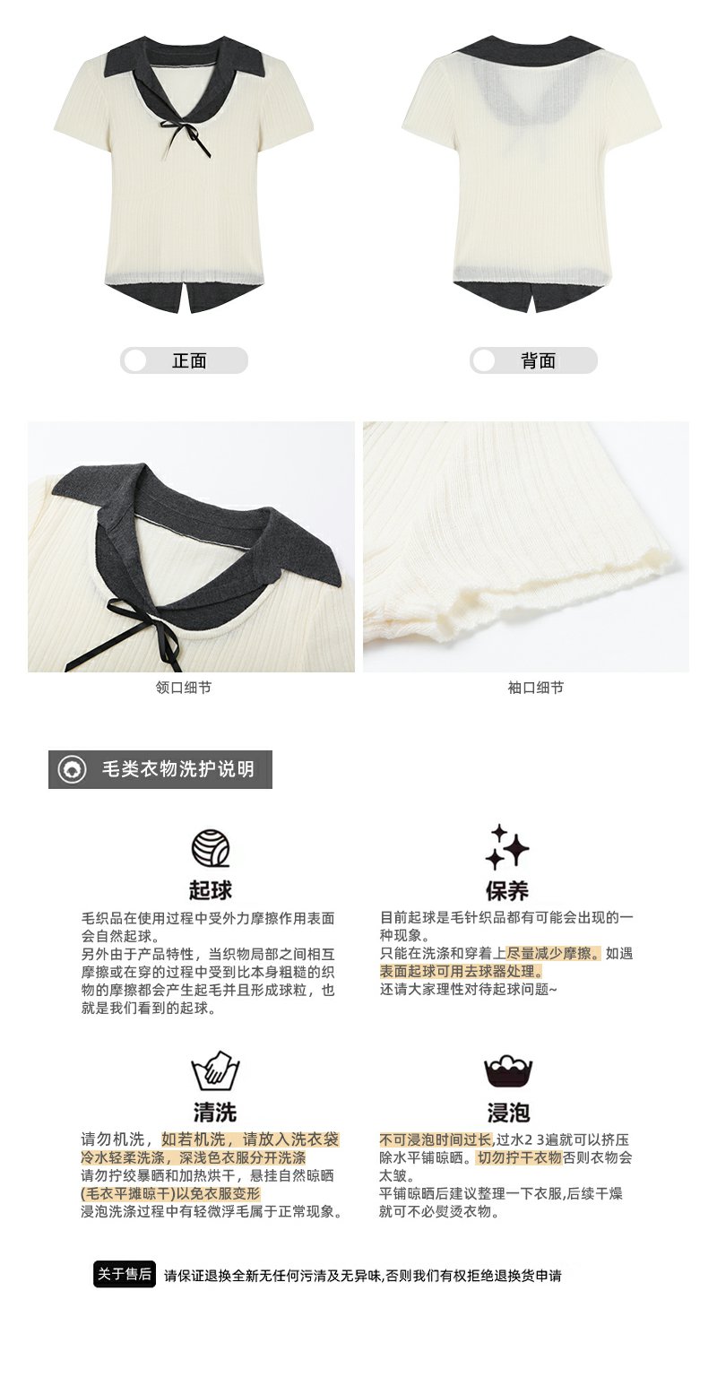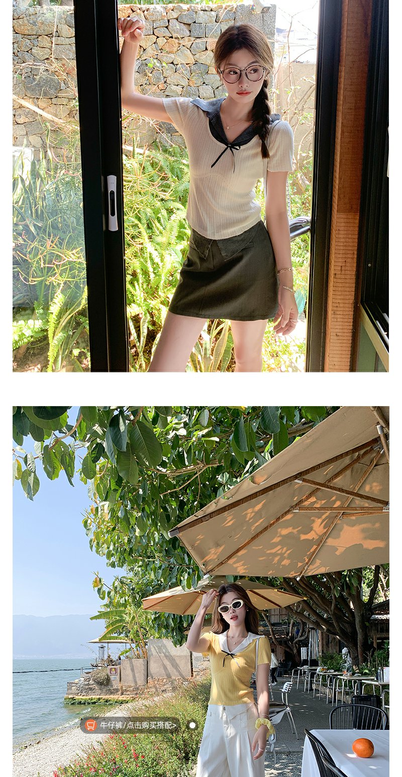【110元任选2件】最后一波现货!2色翻领修身甜美气质针织短袖