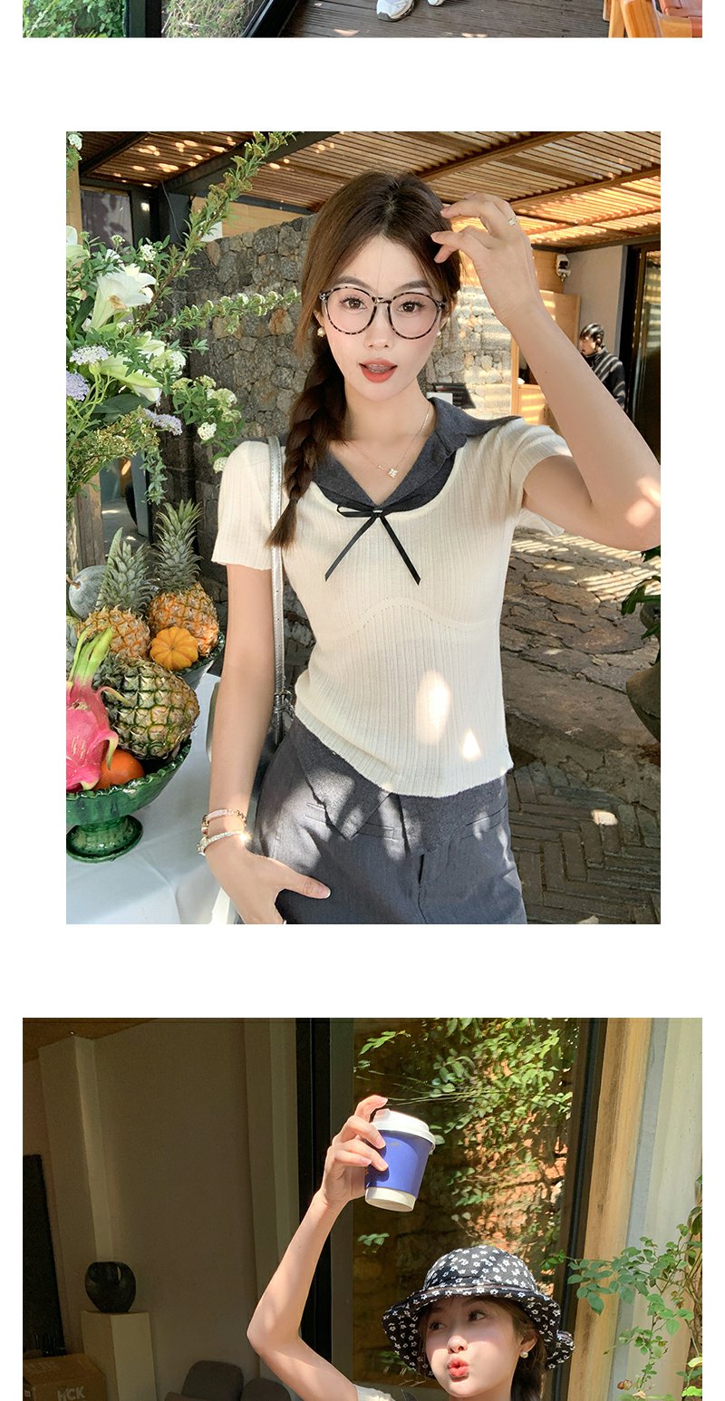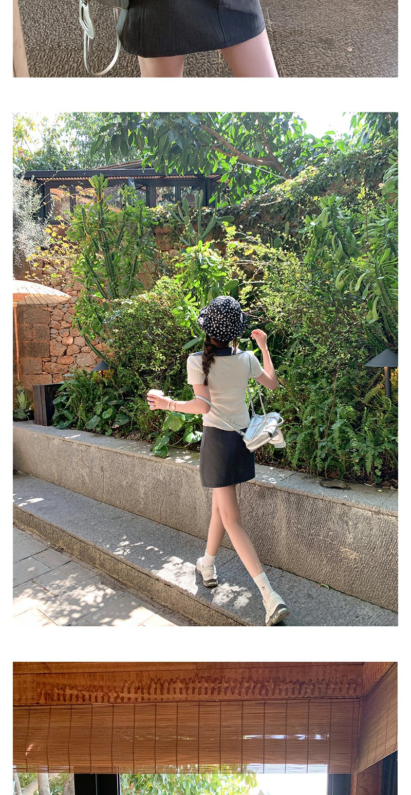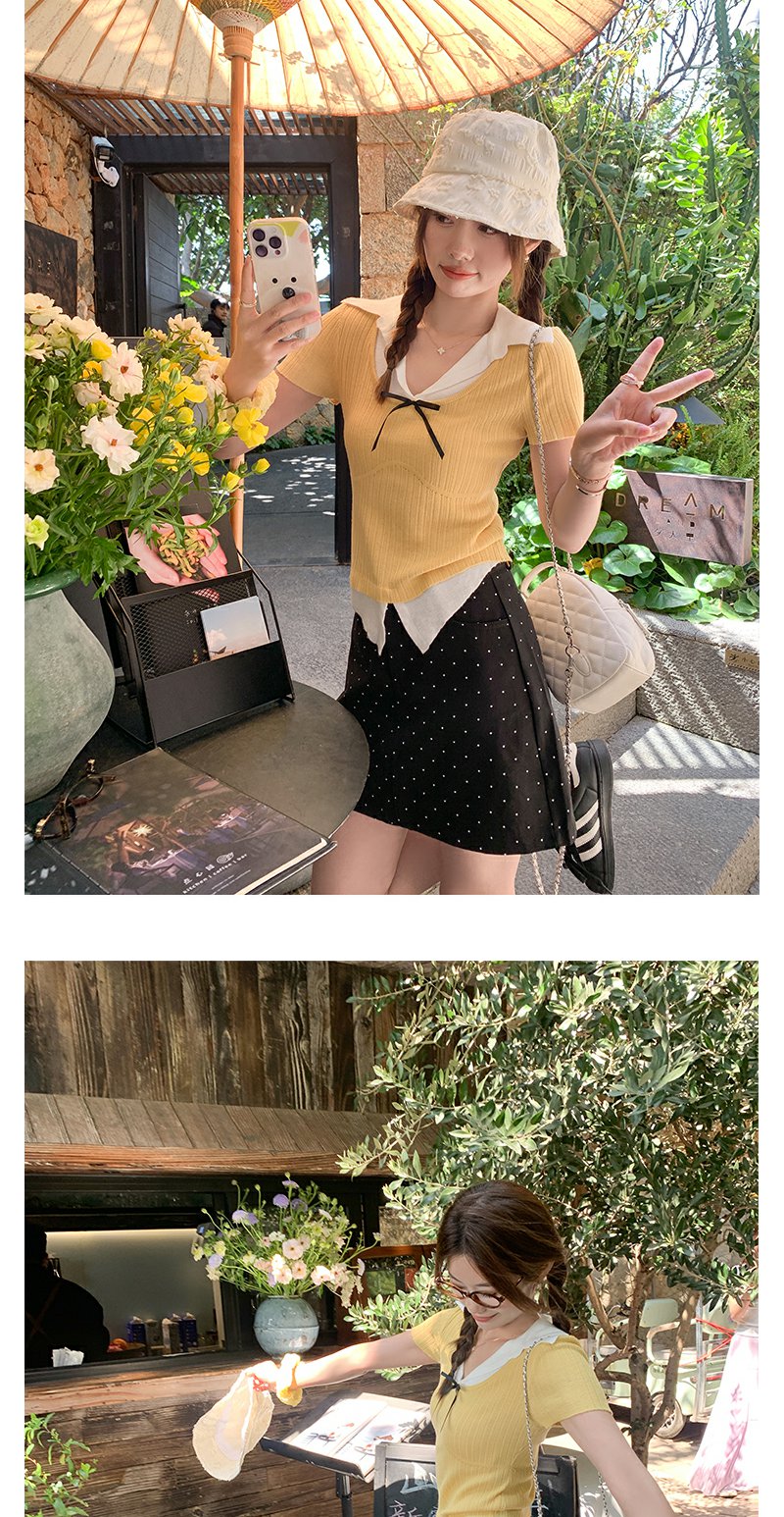 【110元任选2件】最后一波现货!2色翻领修身甜美气质针织短袖