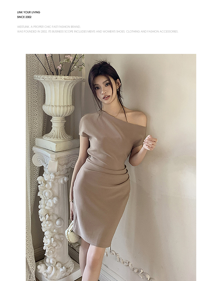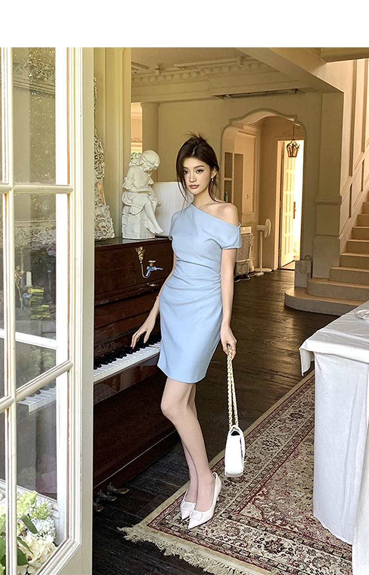 西遇法式紧身包臀裙女夏季新款高级感收腰斜肩宴会连衣裙SS050478