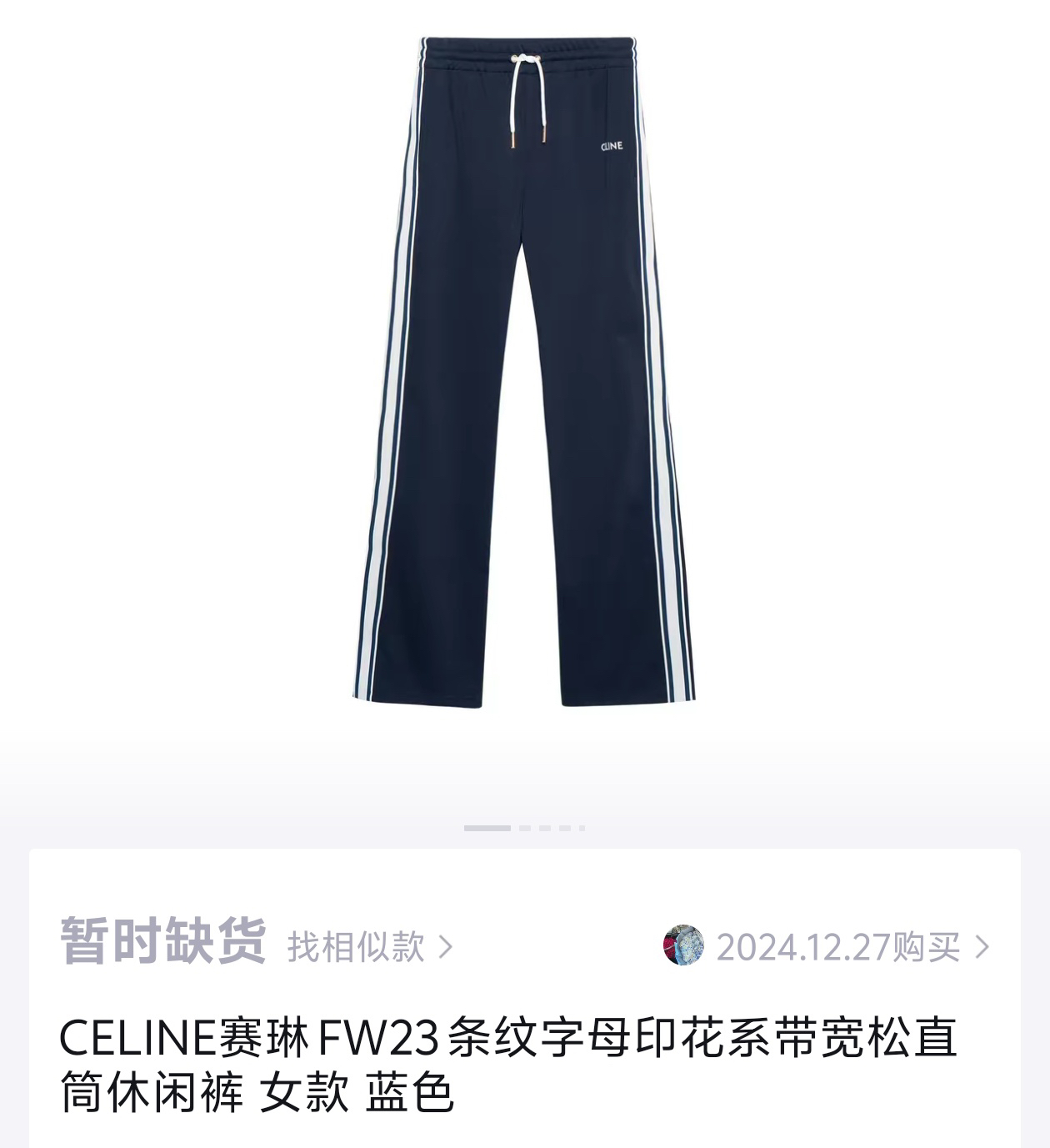 CELINE 凯旋门徽标刺绣休闲裤
