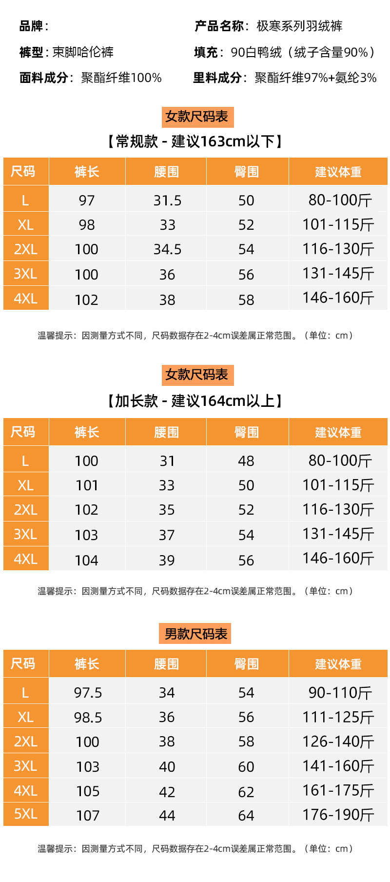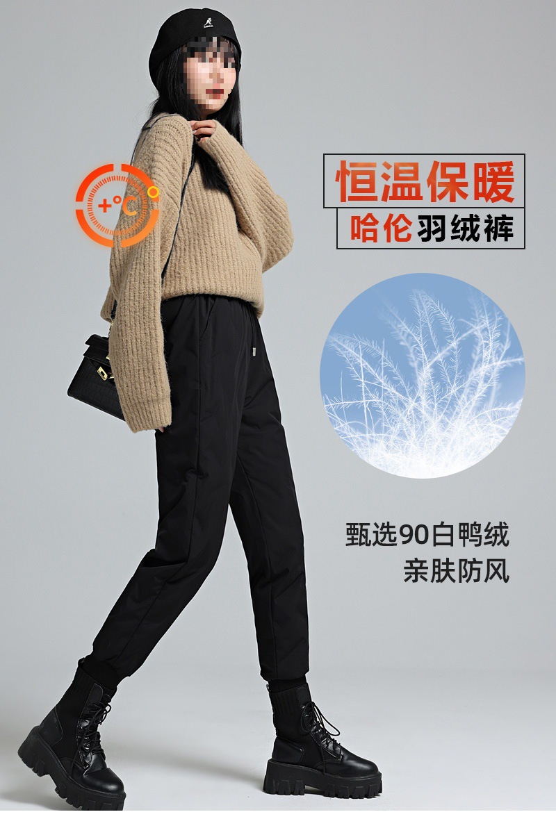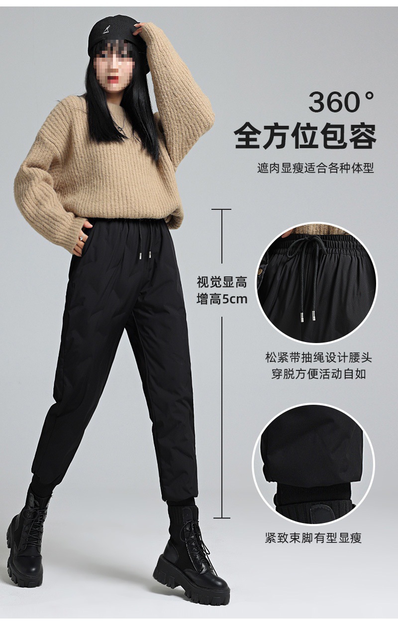 【冬季必备,白鸭绒保暖裤】纯白的季节,只有小个子羽绒裤能为你披上一层温暖的羽翼。男女同款,束脚高腰,防风保暖,细心呵护你的每一寸肌肤。