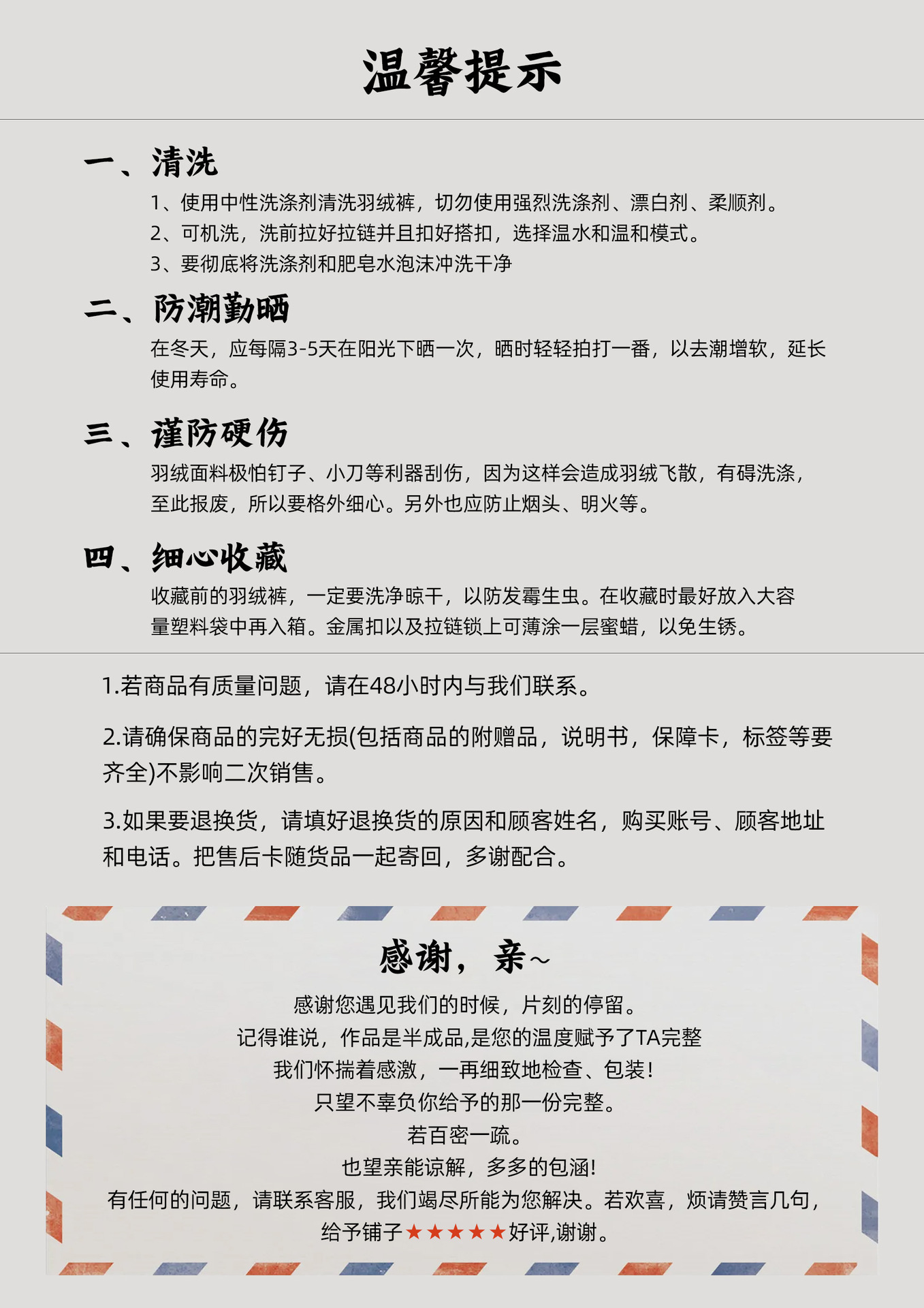 ☆售后政策:在非因质量问题,且无人为损坏,不影响二次销售的情形下,支持7天无理由退换货,超时不予处理!