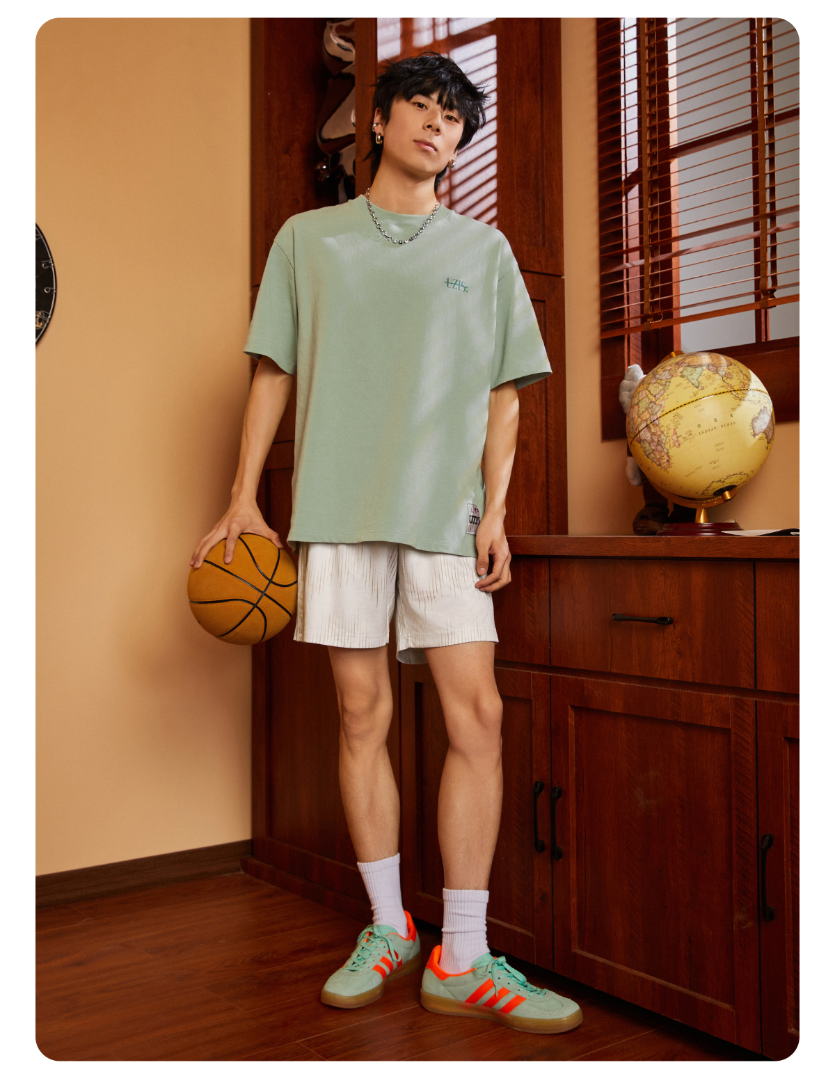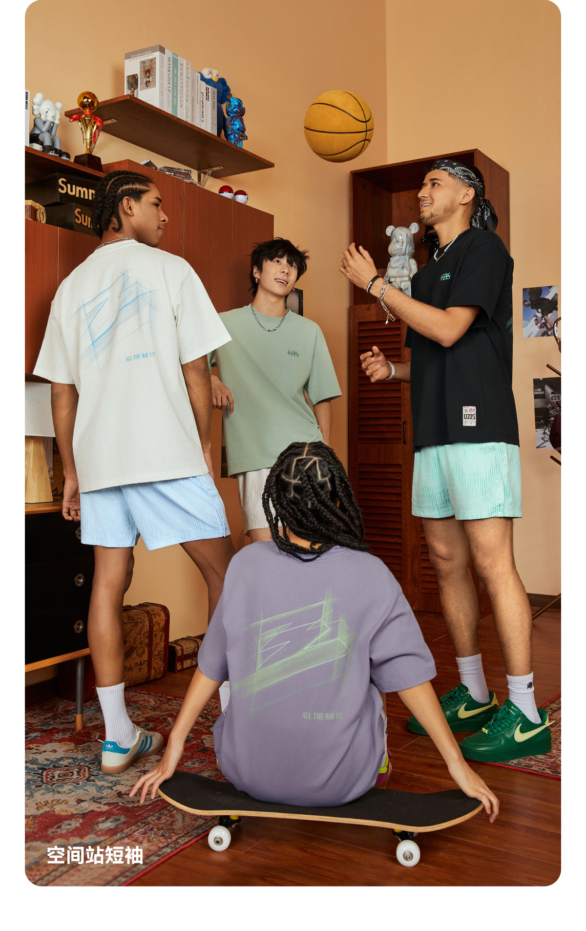 有志者UZIS 针织运动短袖男宽松圆领透气美式篮球纯棉T恤[空间站]