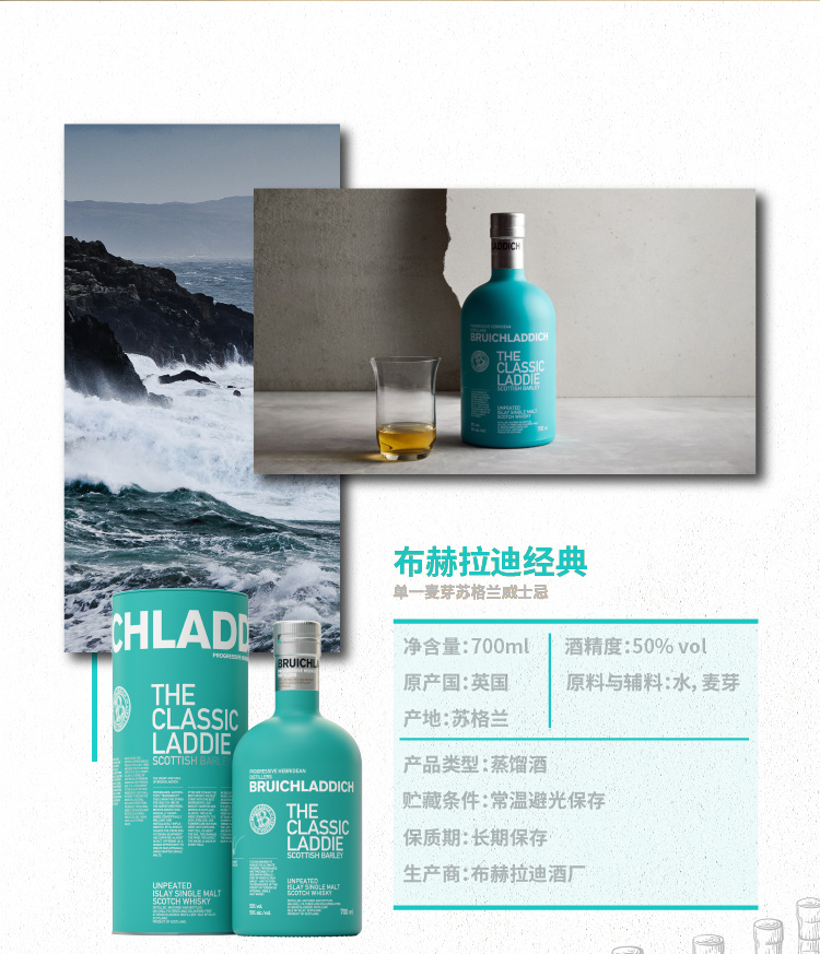 布赫拉迪 经典单一麦芽苏格兰威士忌700ml