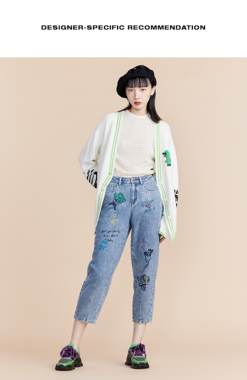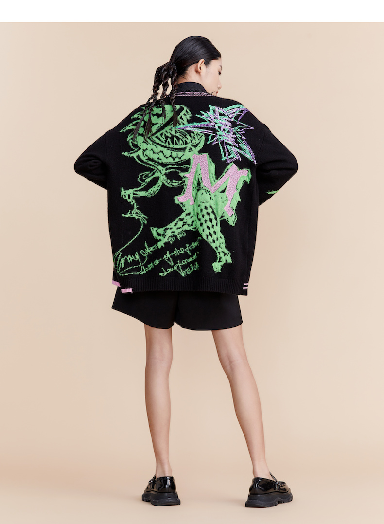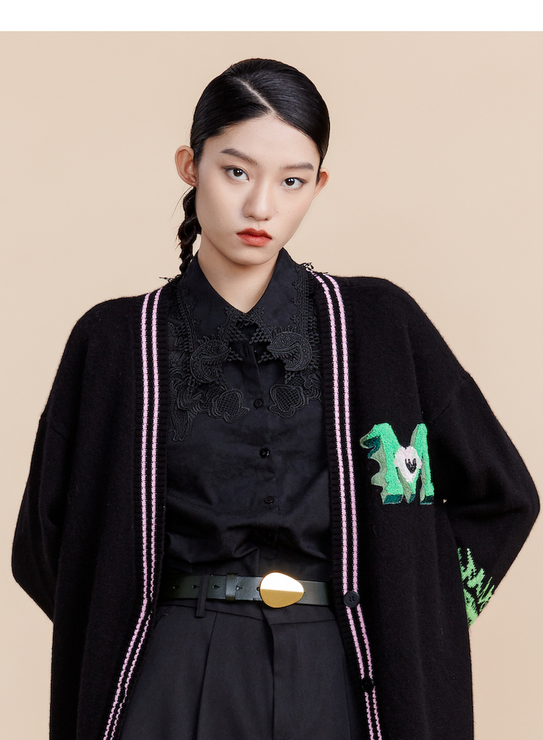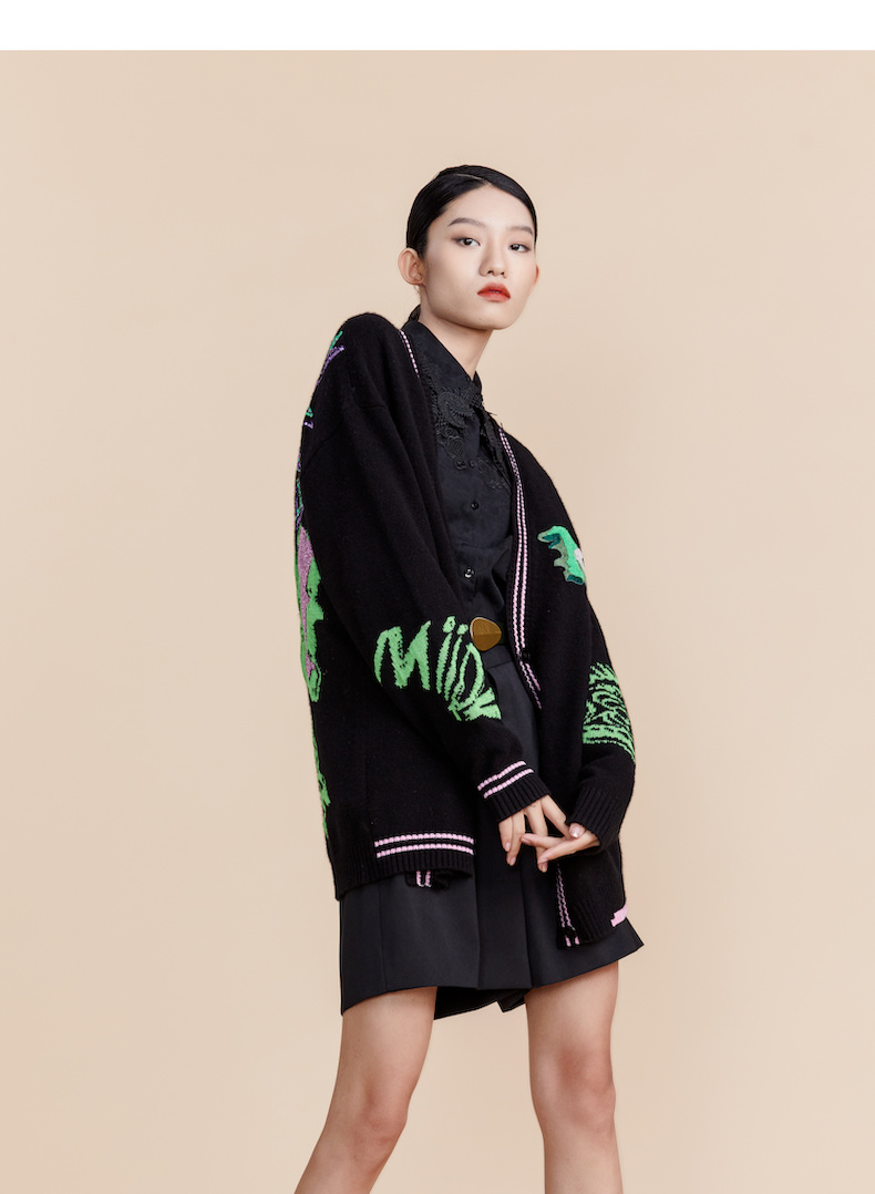 MIIDII谜底2022春新款食人花提花V领中长款针织开衫女221MZ0373