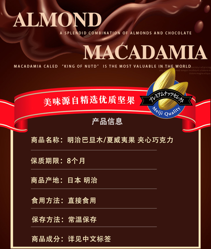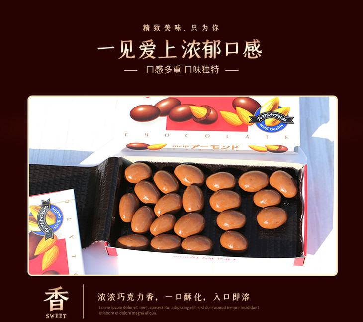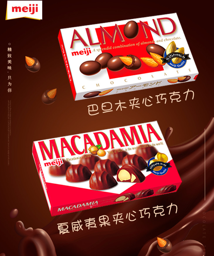 日本本土人气零食 meiji 明治扁桃仁巧克力 88g(004532)