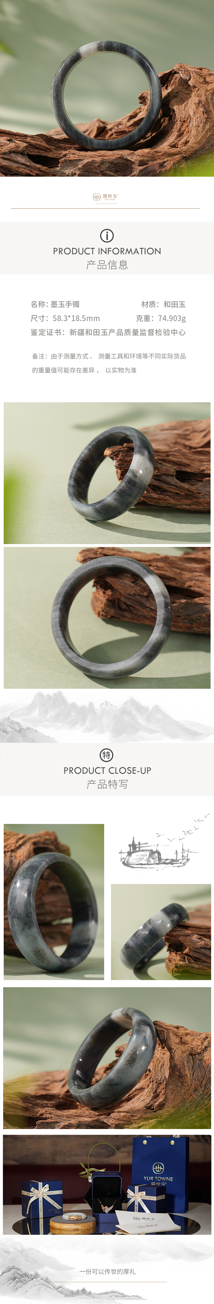 「松风落墨」墨玉青花手镯