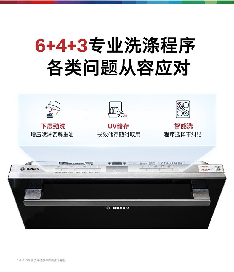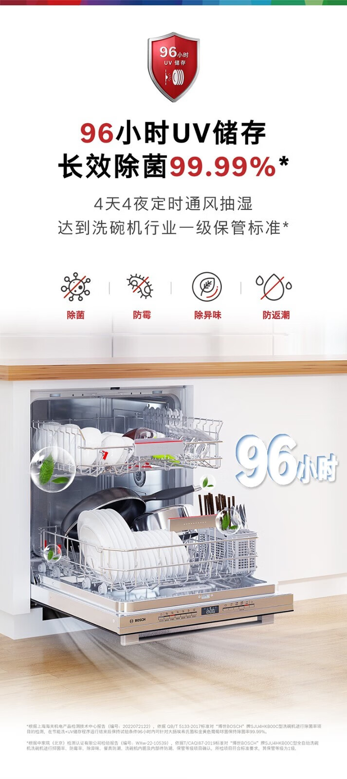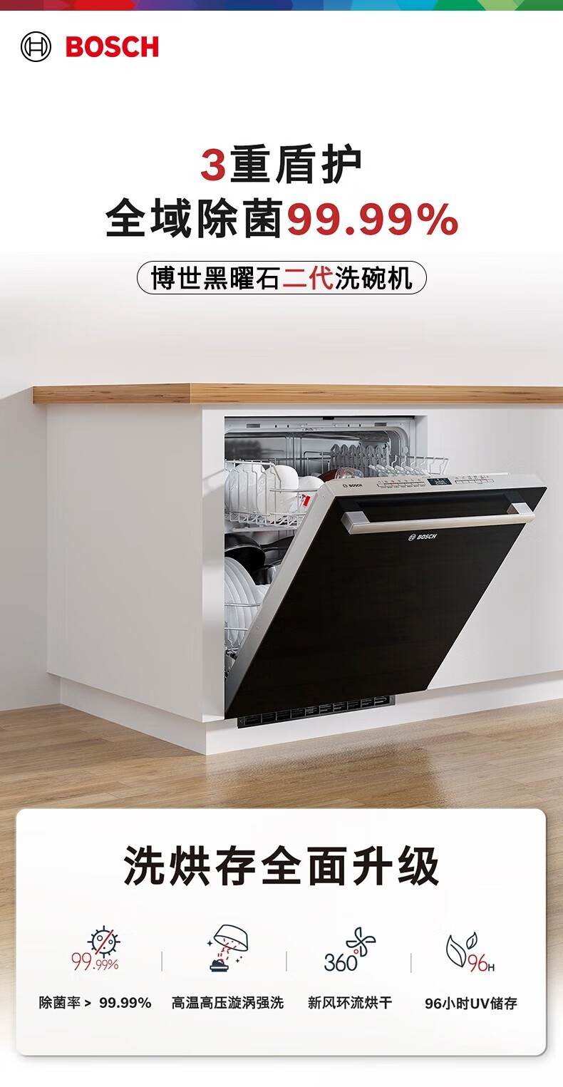 博世(BOSCH) 嵌入式洗碗机14套舱黑色面板全域除菌 SJU4HKB00C黑色+高温洗+96h储存+漩涡