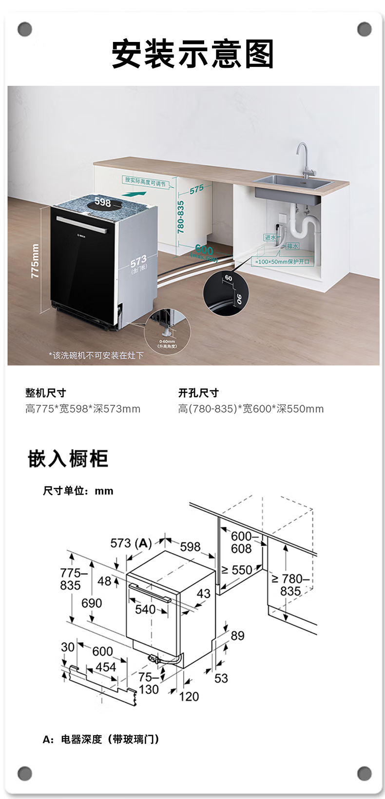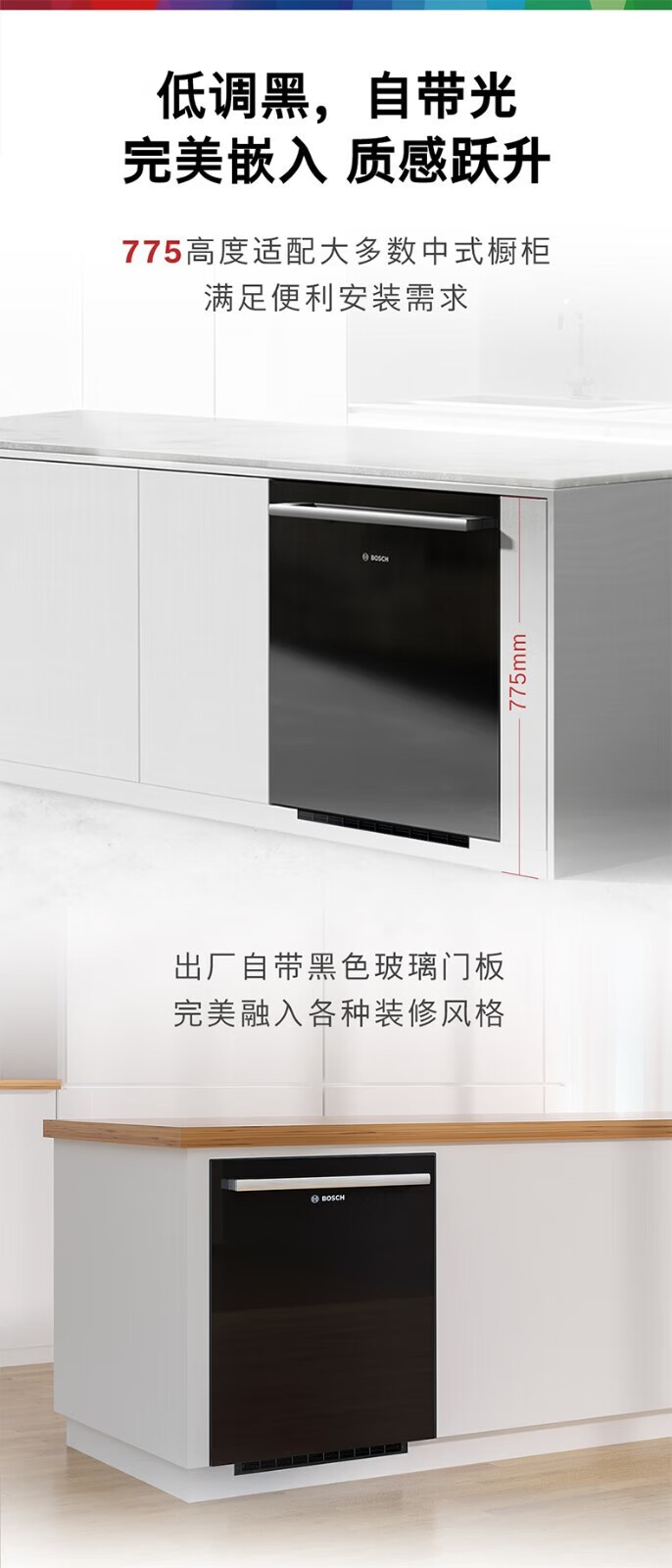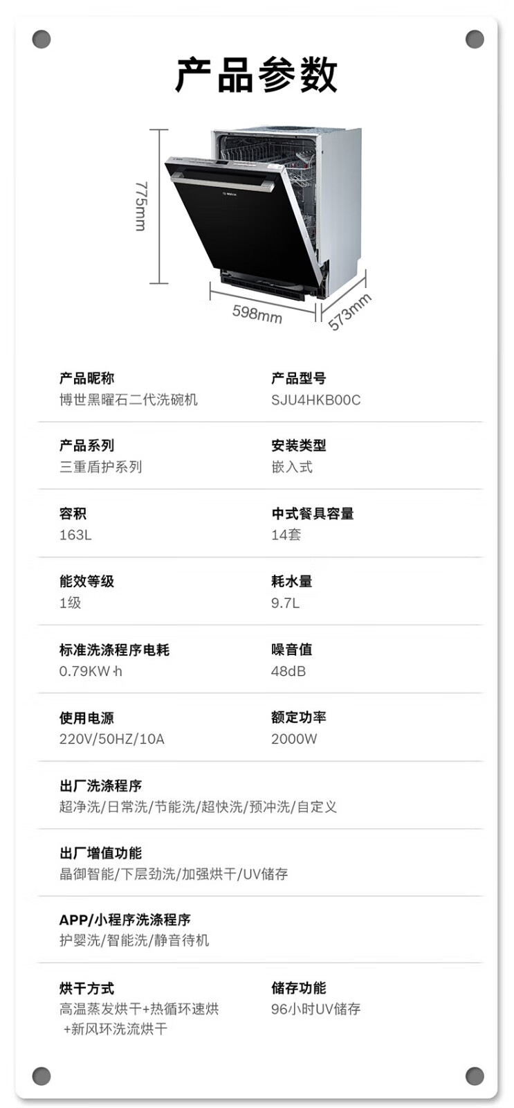 博世(BOSCH) 嵌入式洗碗机14套舱黑色面板全域除菌 SJU4HKB00C黑色+高温洗+96h储存+漩涡