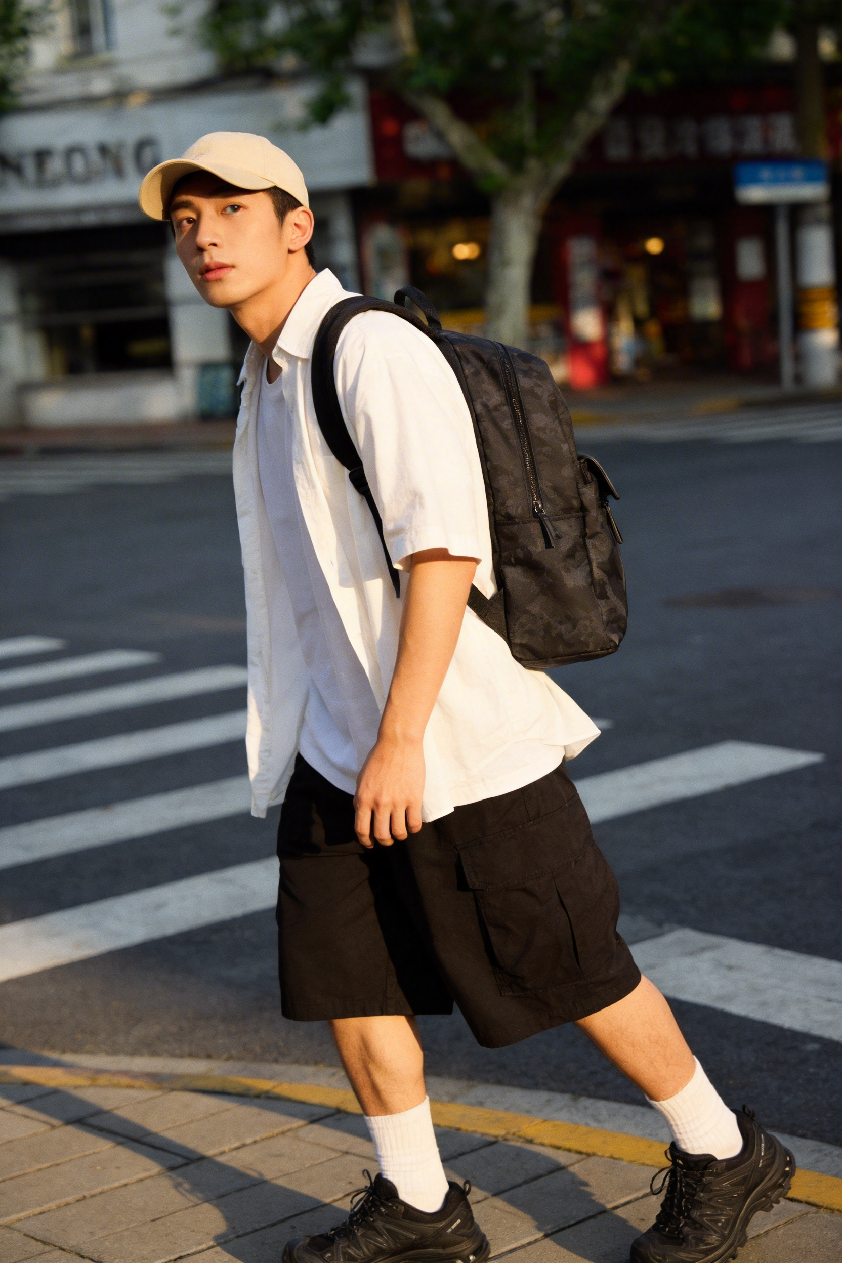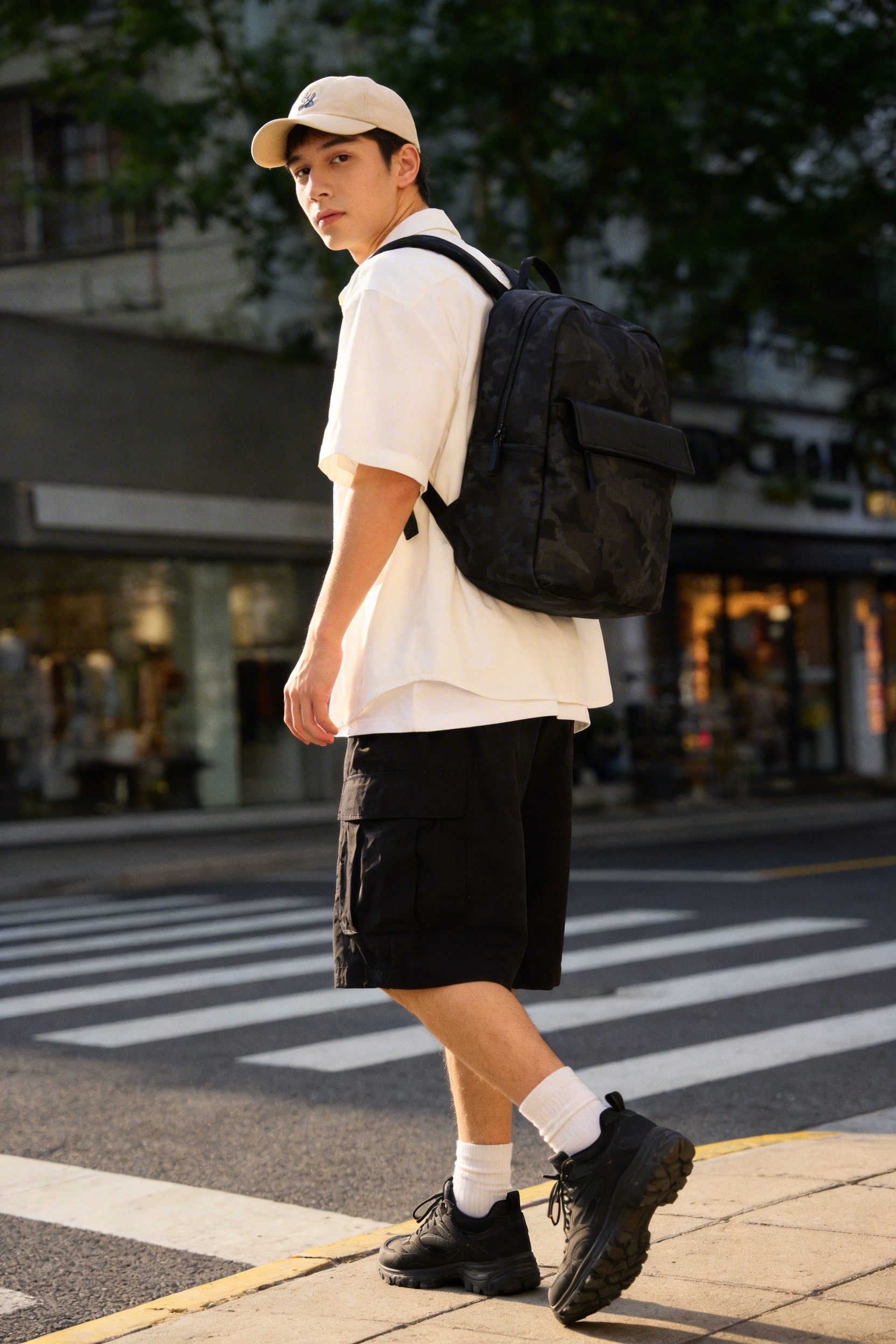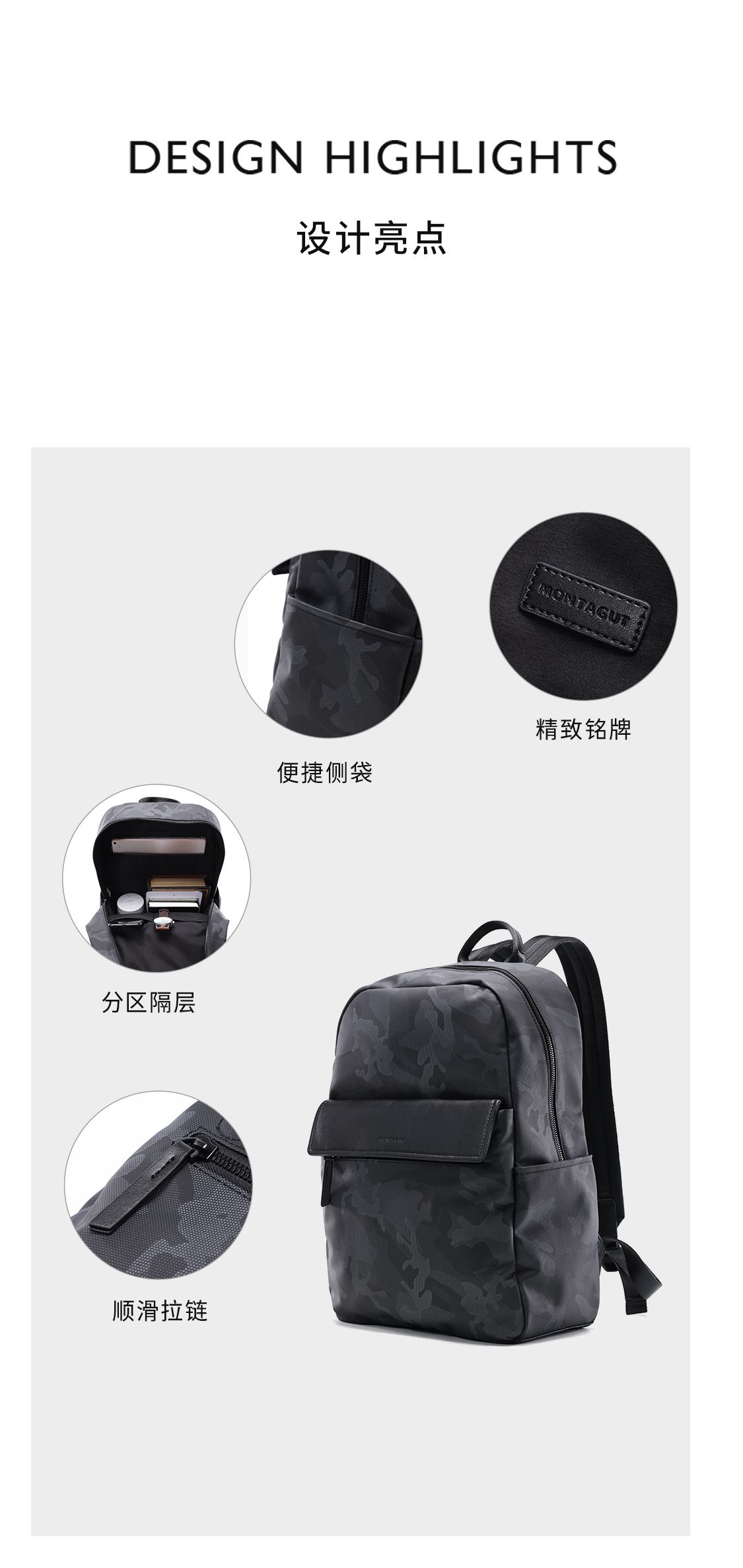 梦特娇男士双肩包通勤迷彩布配皮大容量背囊防泼水旅行背包