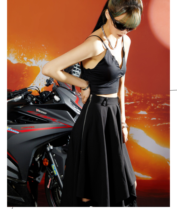 WHISTLEHUNTER(WSTHT)双开合侧拉链长裙不规则下摆垂感百搭半身裙