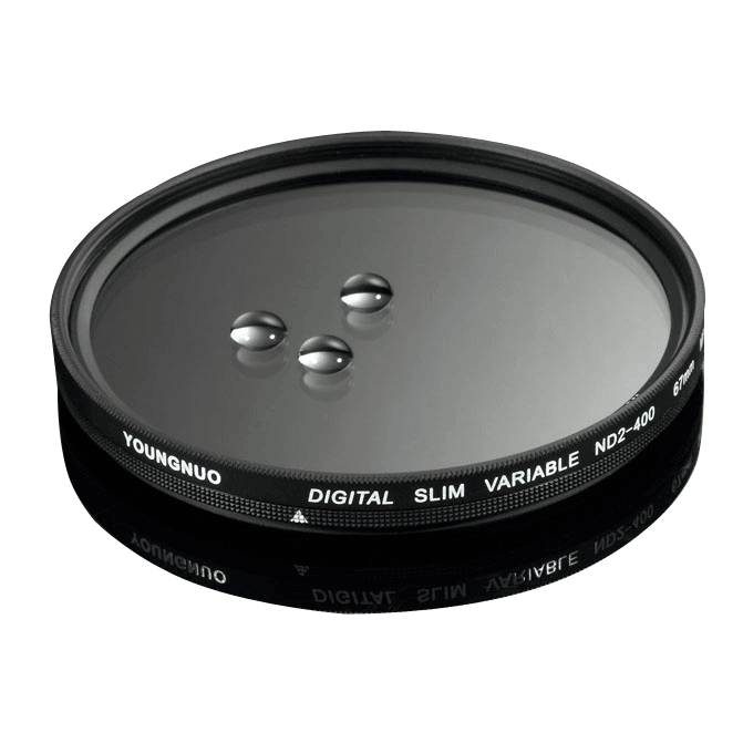 德国原装进口光学玻璃及 ND片,无级可调节一档到九档减光;在强光下可使用大光圈,降低通光量,可做出前后景虚化的特别效果;
