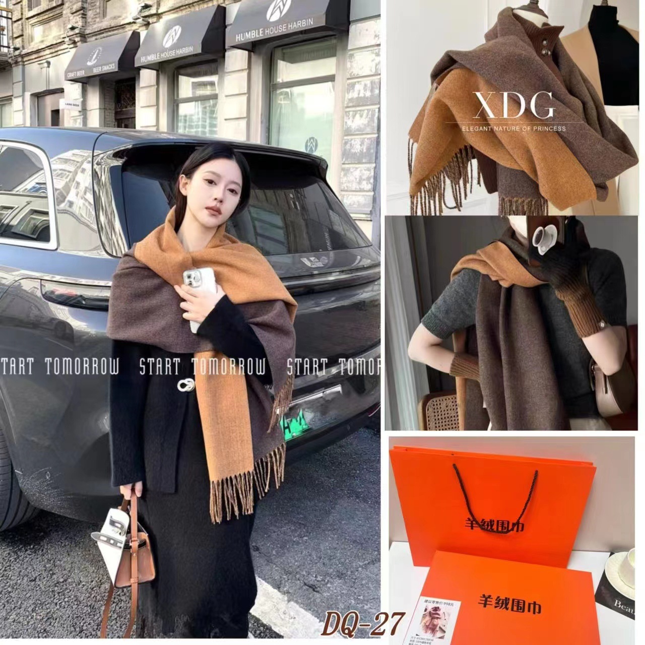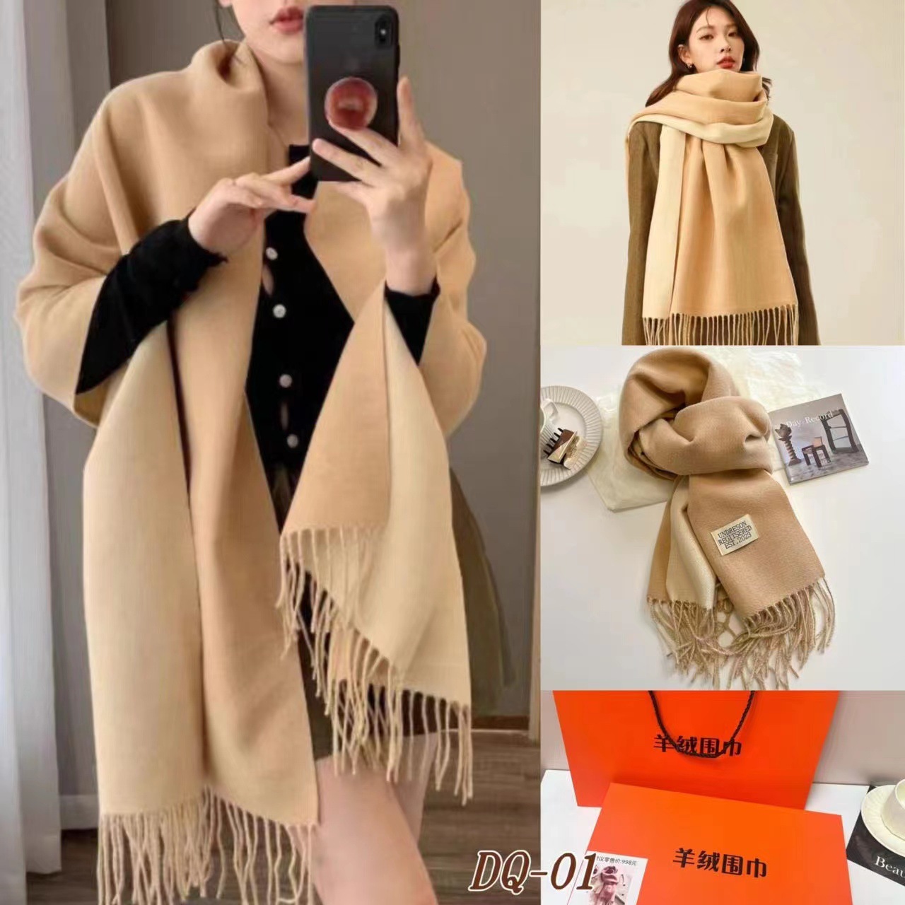 新款围巾礼盒配手提袋冬季百搭高级礼盒送礼生日韩版围脖保暖披肩两用秋冬拉毛新款爆款小红书同款