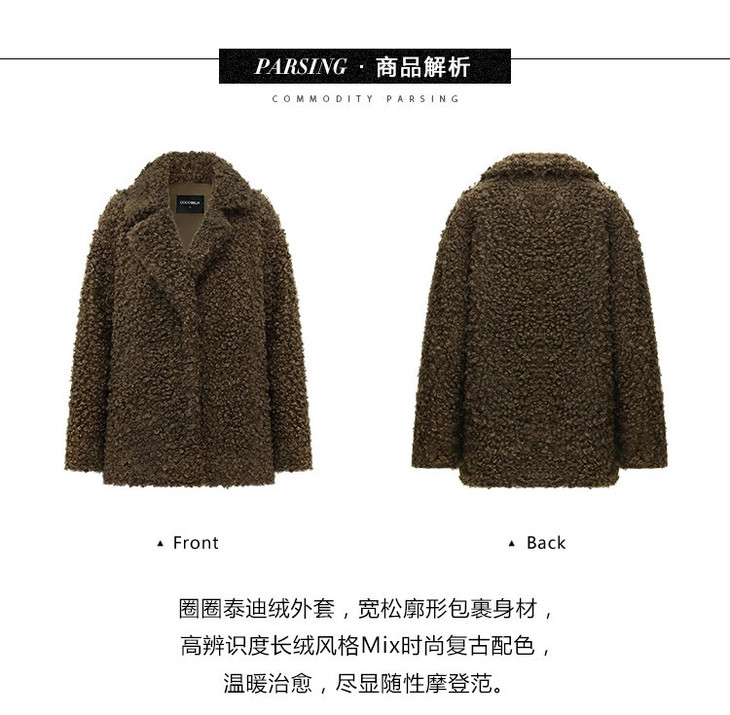 【秋冬特惠】COCOBELLA质感泰迪卷毛绒外套颗粒绒保暖毛茸大衣SC525