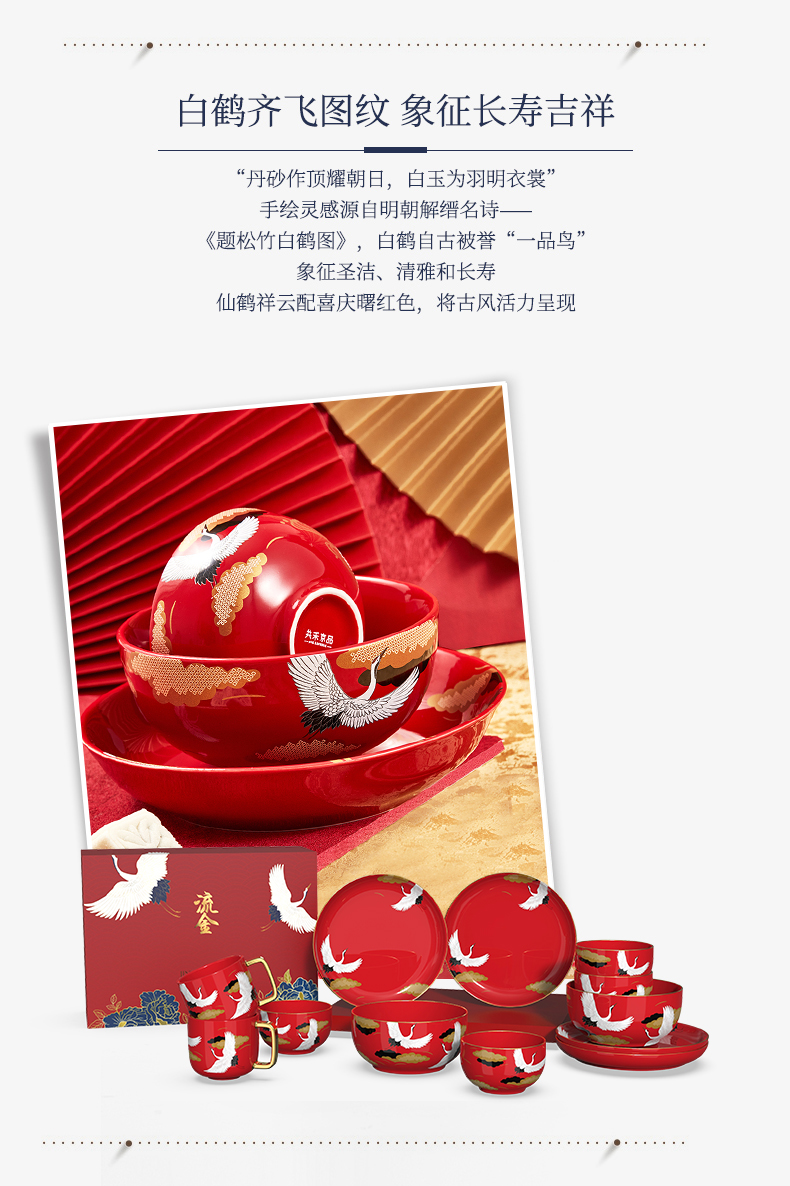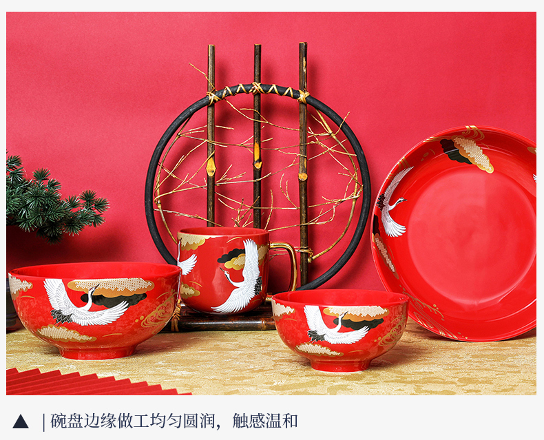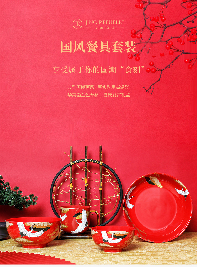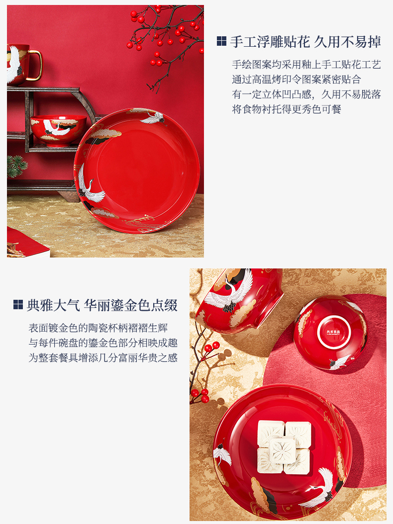 国风十二件套餐具 红色婚庆