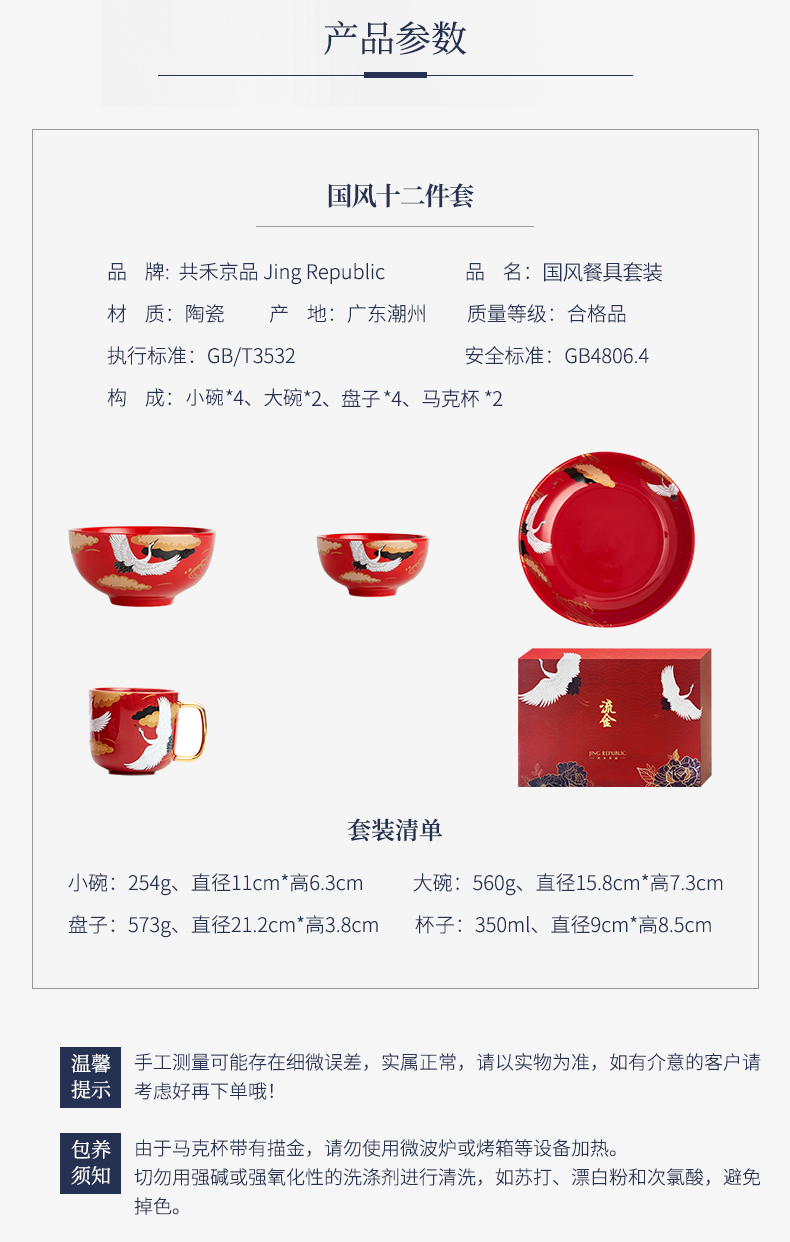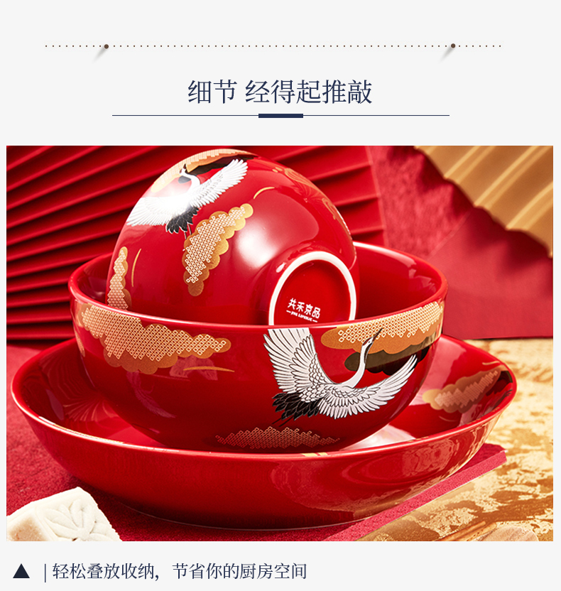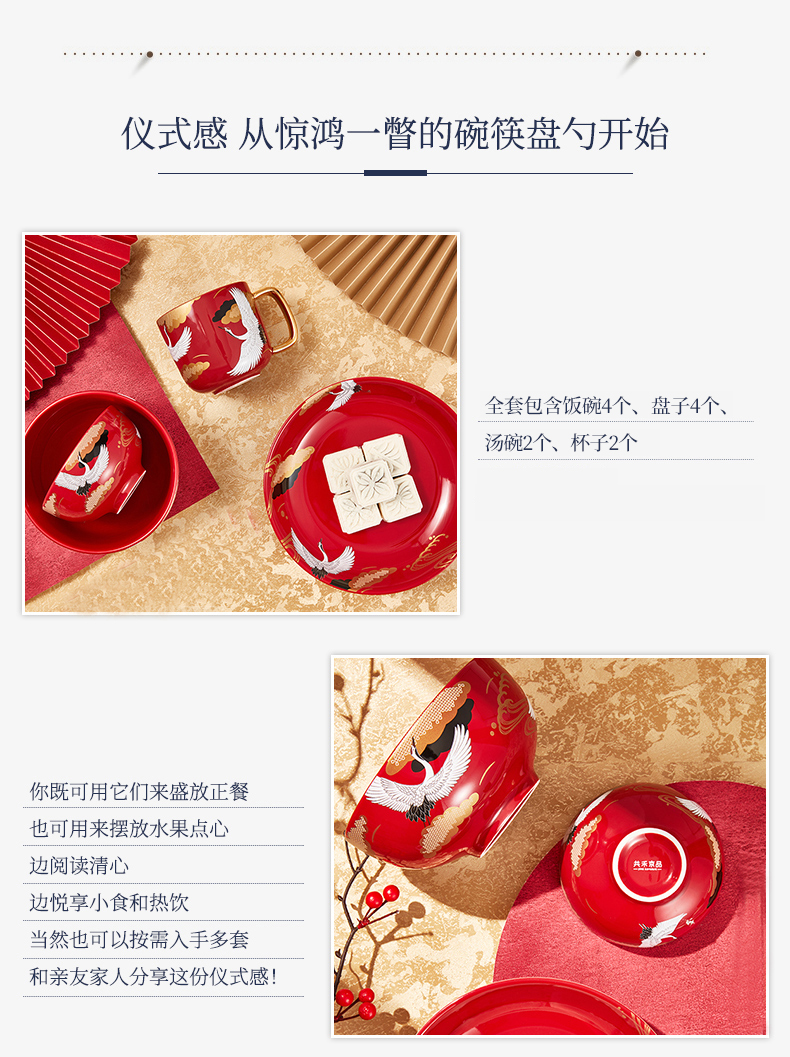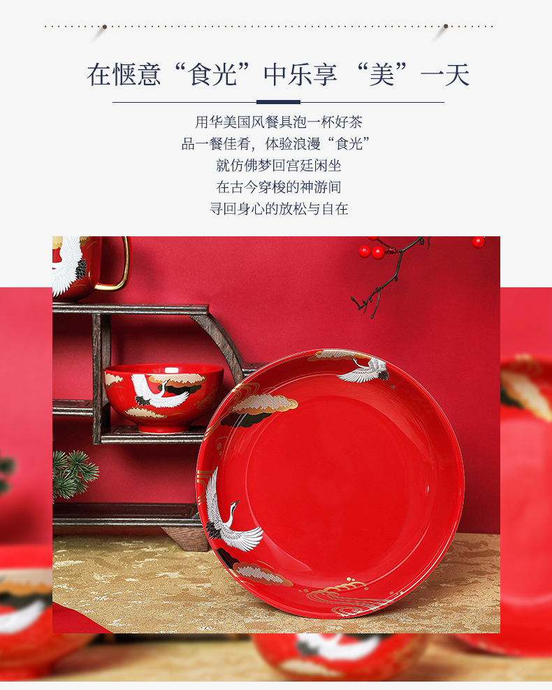 国风十二件套餐具 红色婚庆