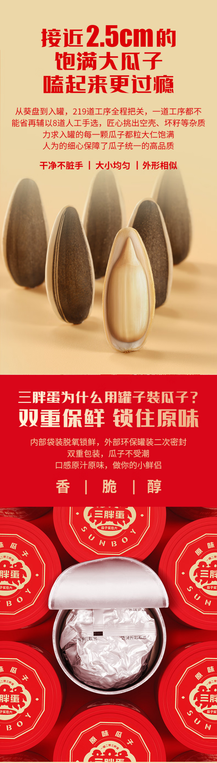 三胖蛋经典原味瓜子180g*4罐