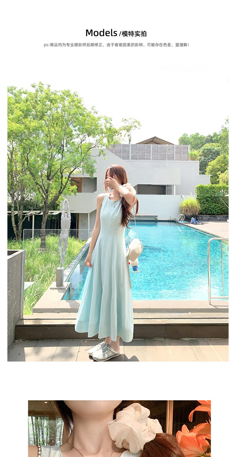 <曾小咸推荐>韩版简约气质收腰无袖连衣裙
