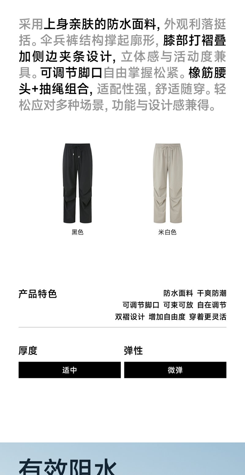 【商场同款】CHINISM赤尘 亲肤防水伞兵裤男2025夏季男士休闲裤