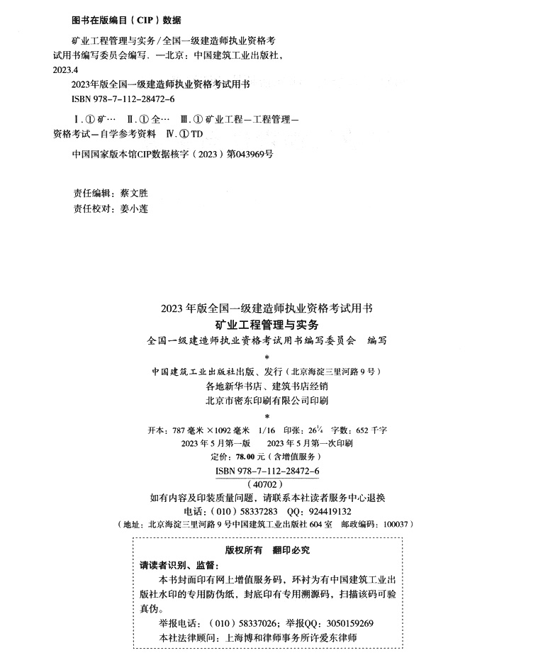 书名:2023版一级建造师矿业工程管理与实务