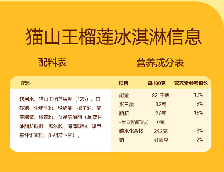 榴芒一刻 猫山王冰淇淋6支装