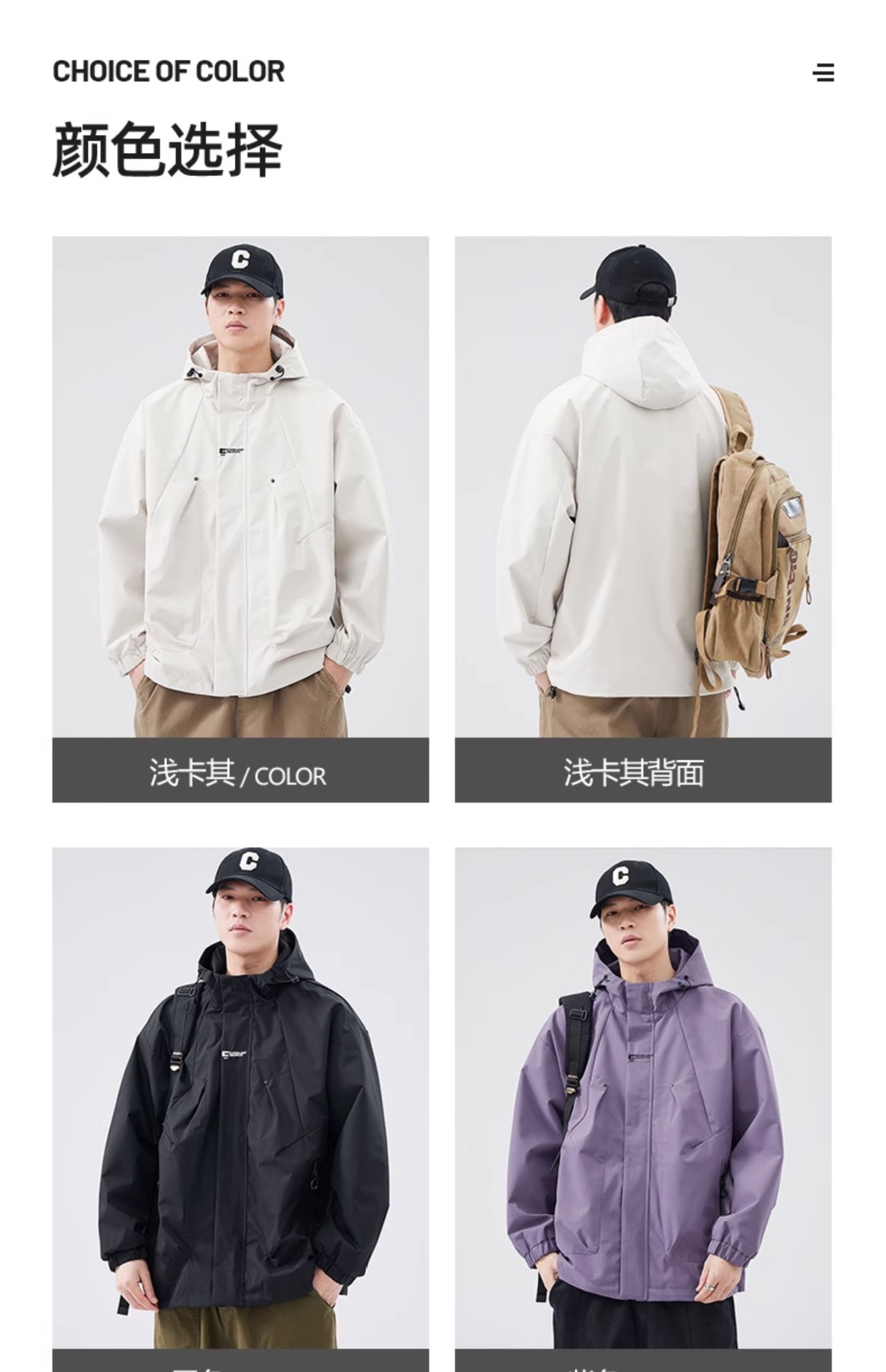NASA三防冲锋衣情侣外套男士2025新款纯色简约风防风防水登山夹克