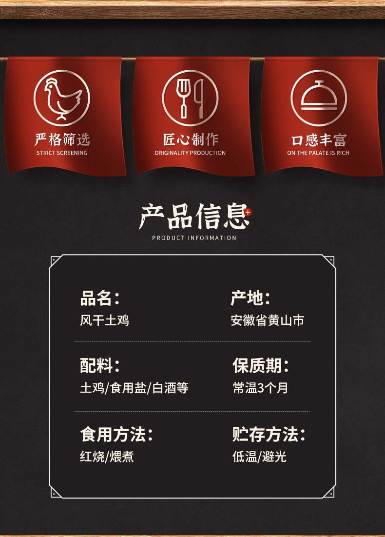 田园徽州牌风干鸡800g/袋