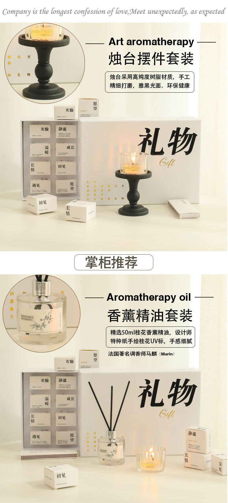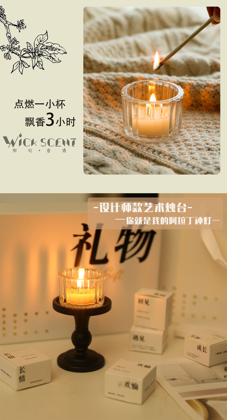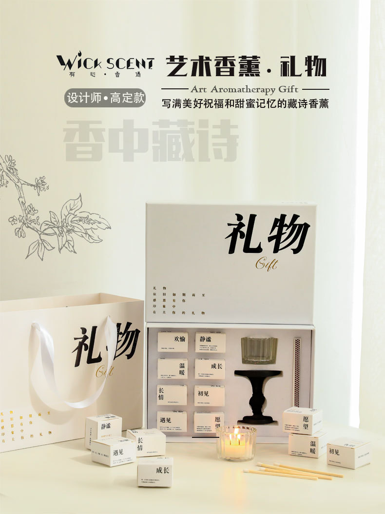 「七夕佳礼!数款可选」香里藏诗香薰蜡烛礼盒套装 居家日用生日礼品烛台礼物高级感茶蜡七夕伴手礼
