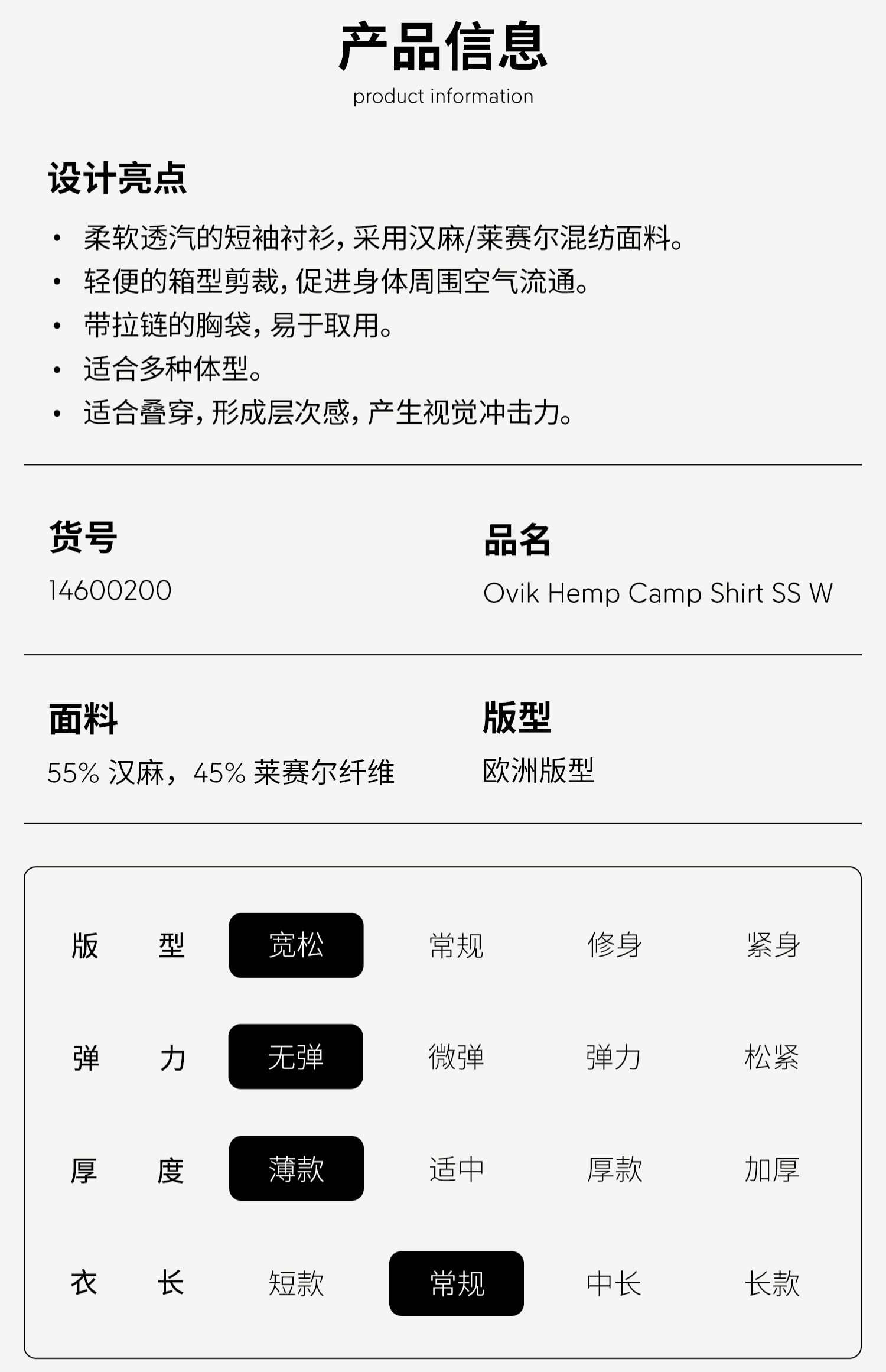 北极狐 女户外运动短袖衬衫 2025新款汉麻春夏休闲衬衣14600200