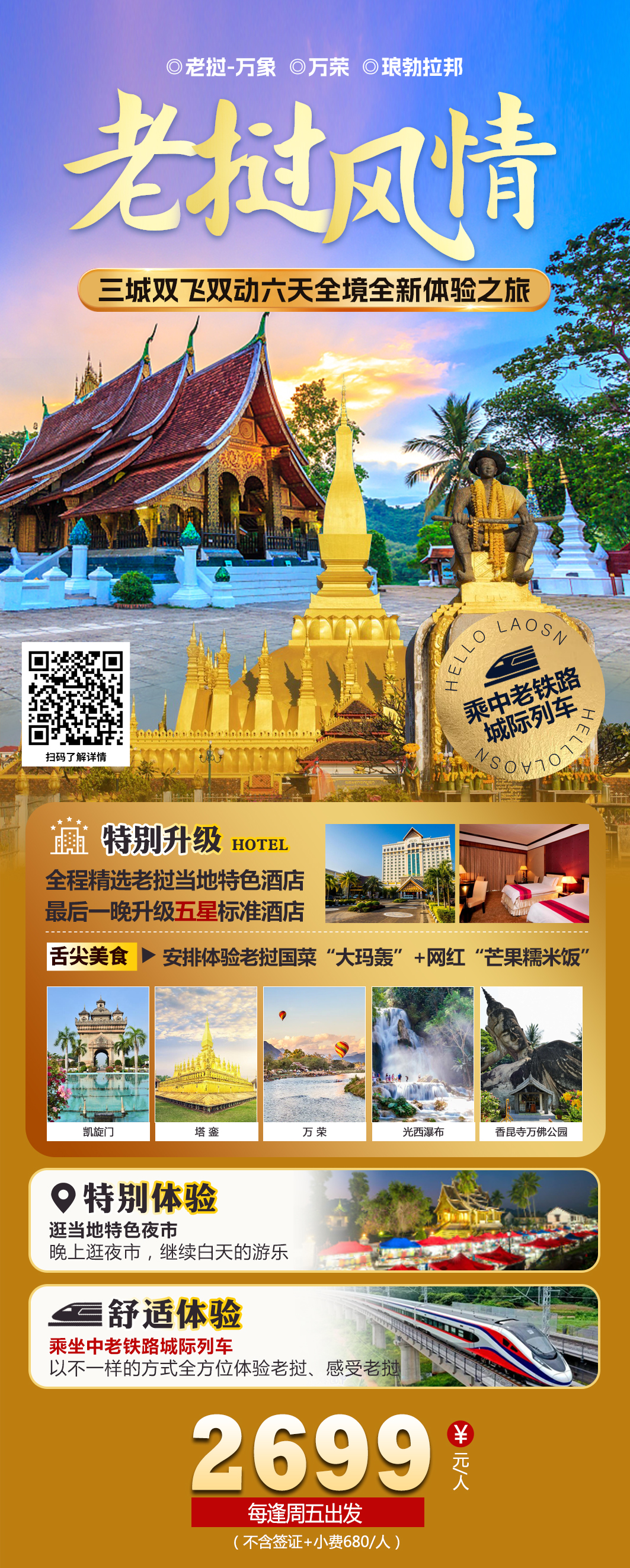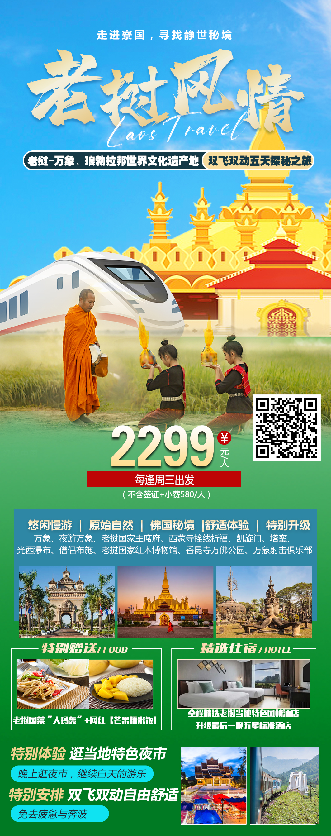 老挝-万象、琅勃拉邦 双飞双动五天游/逢周三出发 六天/逢周五出发
