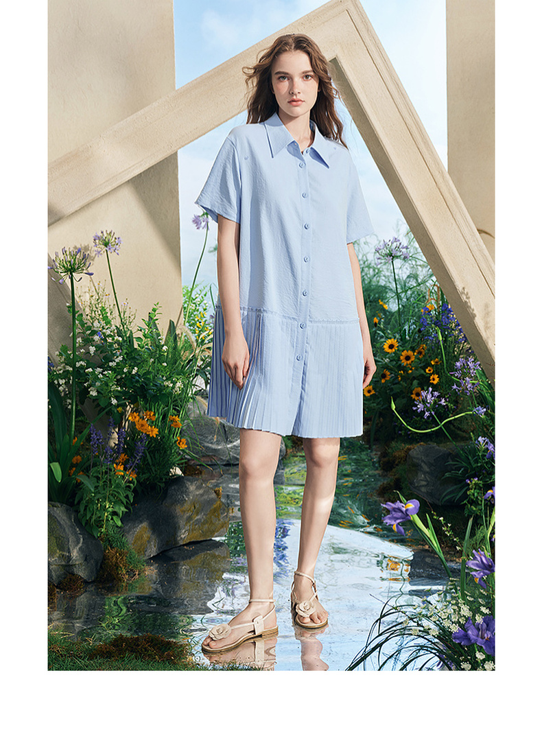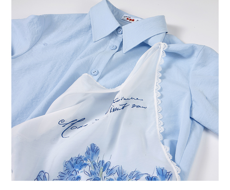 两三事梵高文艺清风自来2025夏季新款刺绣印花布拼接假两件连衣裙