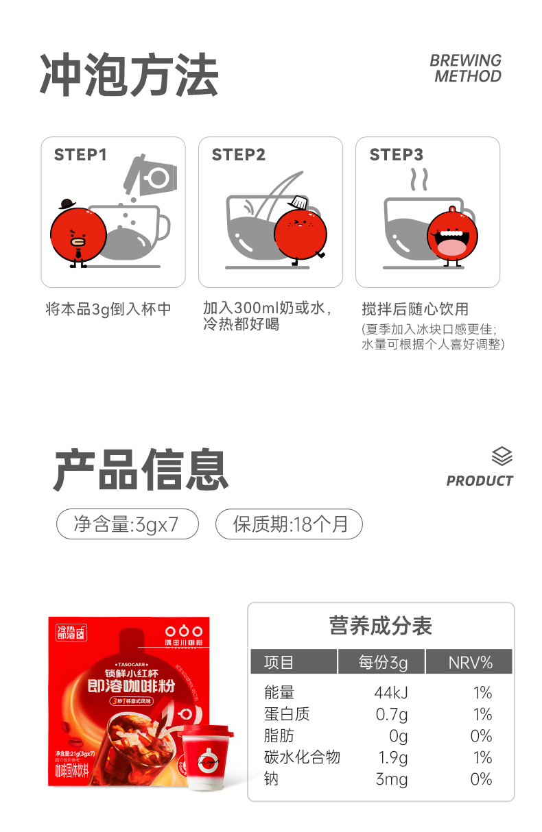 隅田川锁鲜小红杯即溶咖啡粉-意式咖啡3g*7颗装
