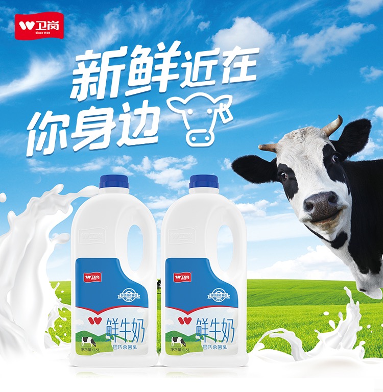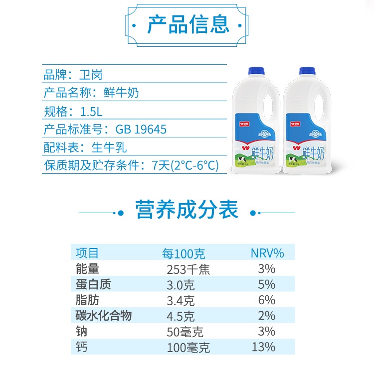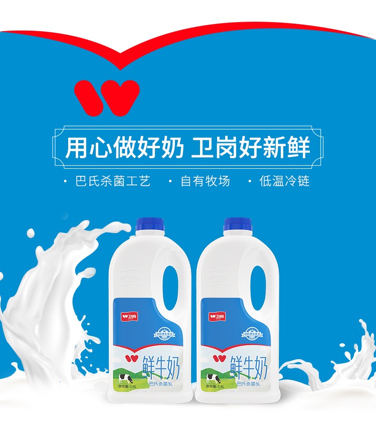 卫岗 低温鲜牛奶1.5L巴氏杀菌乳✖️2桶