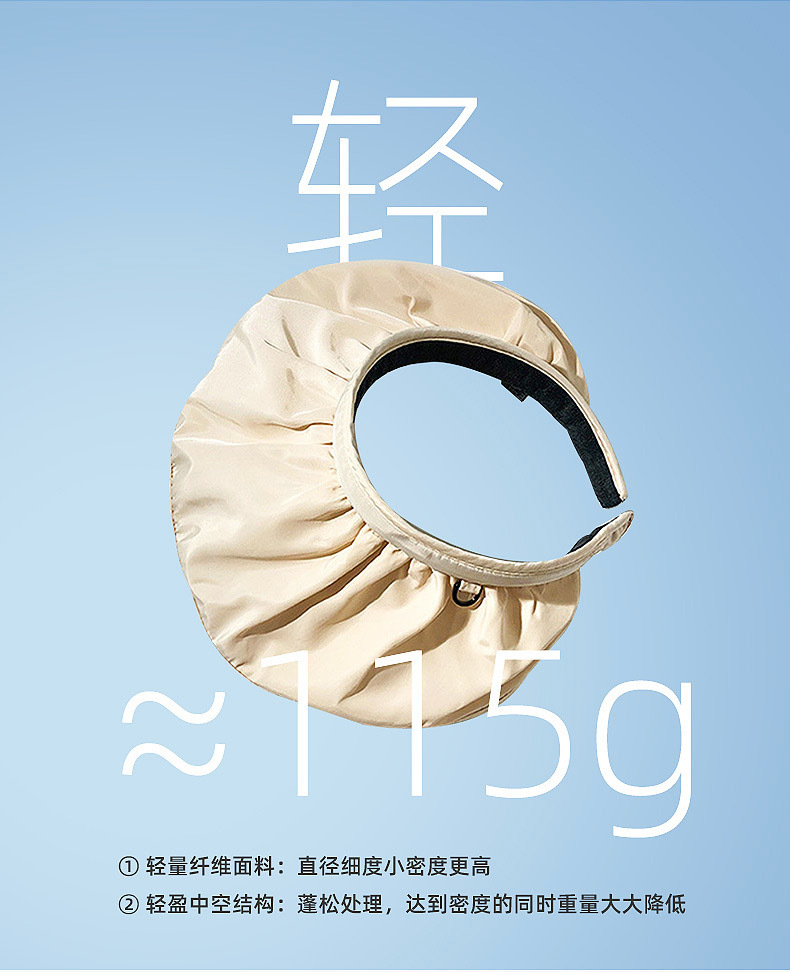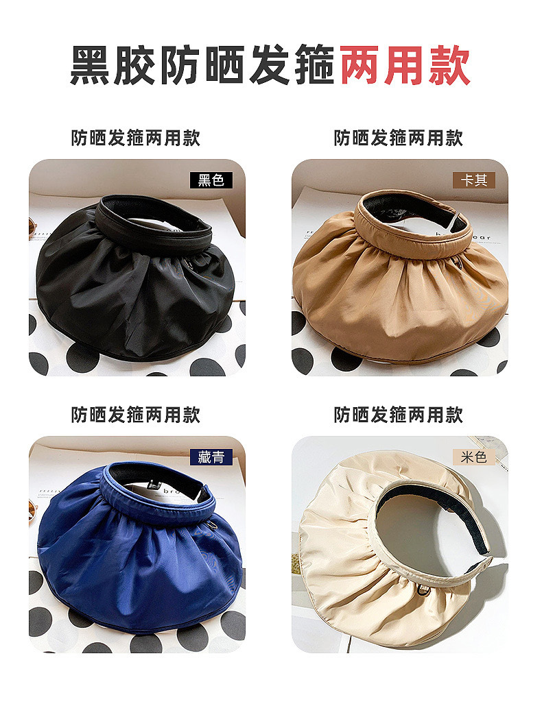 防晒发箍式遮阳帽女夏黑胶防紫外线贝壳帽空顶户外大檐遮脸太阳帽2025新款小红书爆款