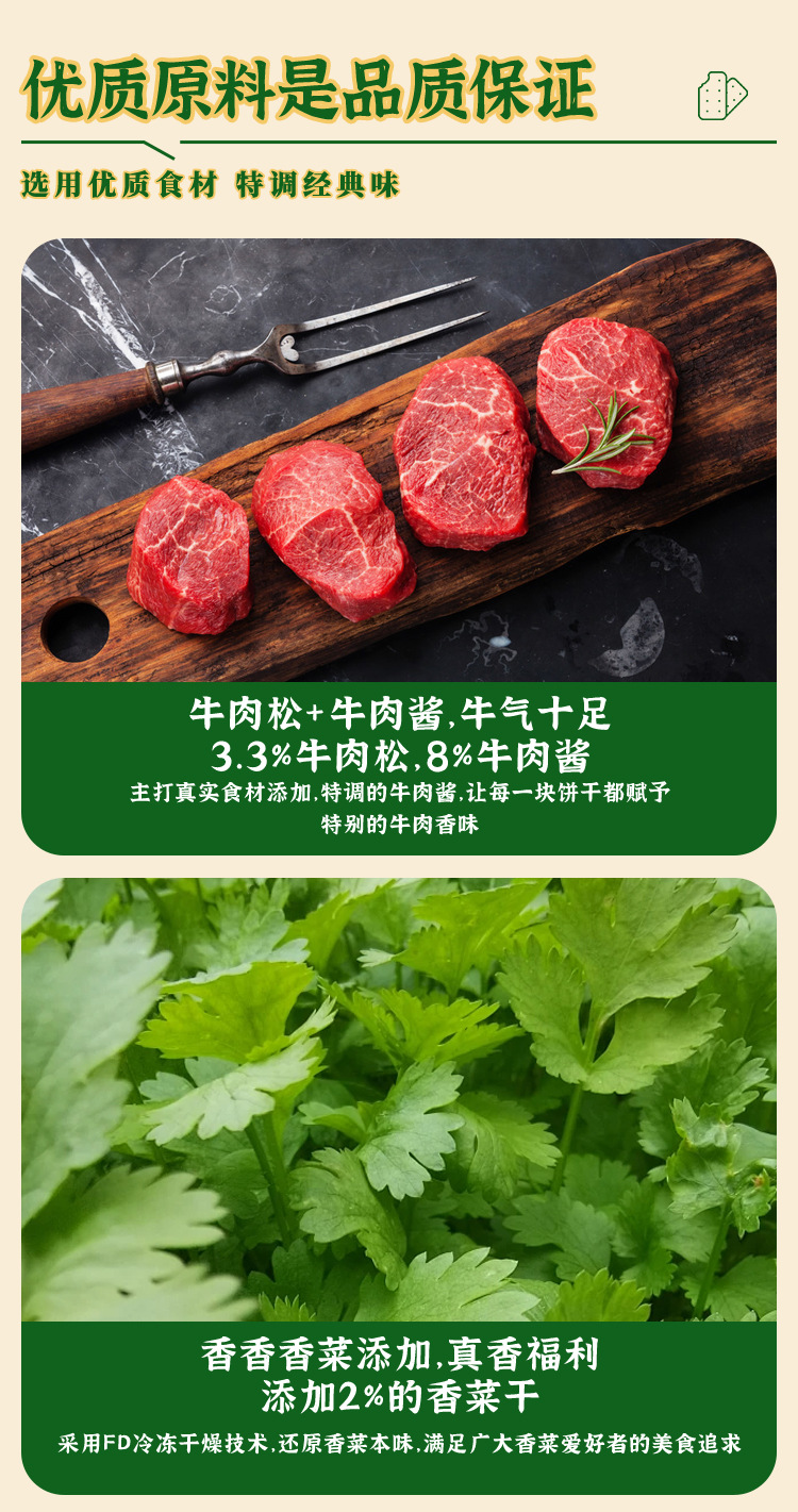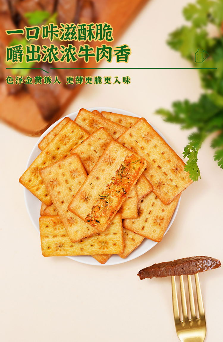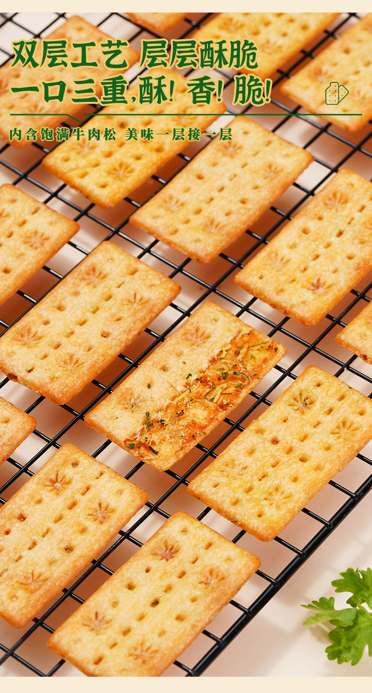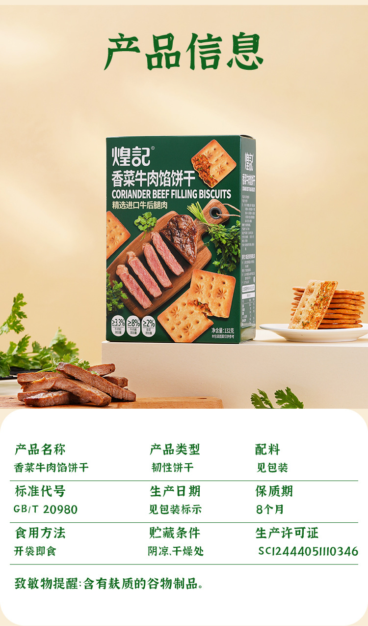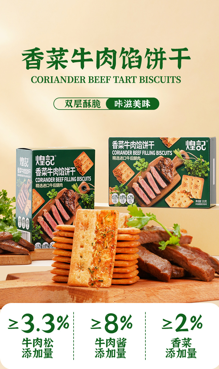买一送一煌记香菜牛肉馅饼干夹心薄脆肉松双层脆132g盒装解馋零食新款新品办公室休闲零食童年记忆故乡小吃零食
