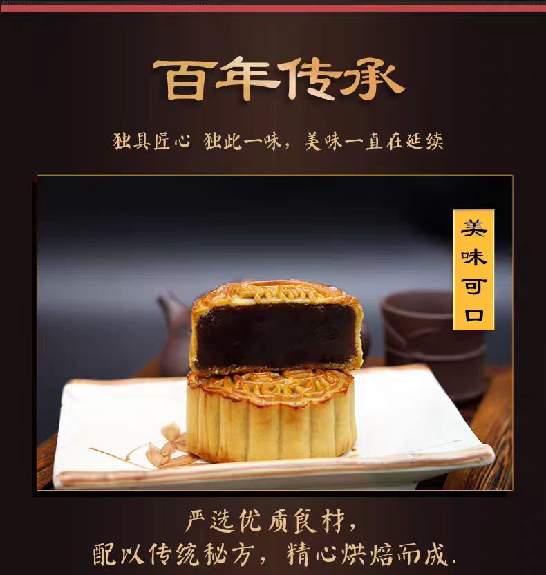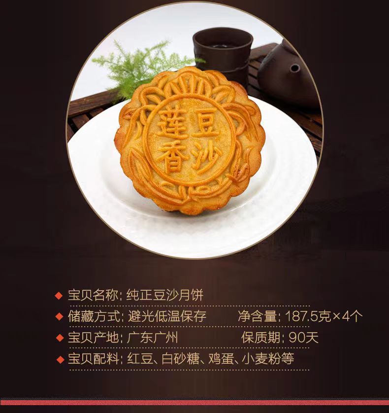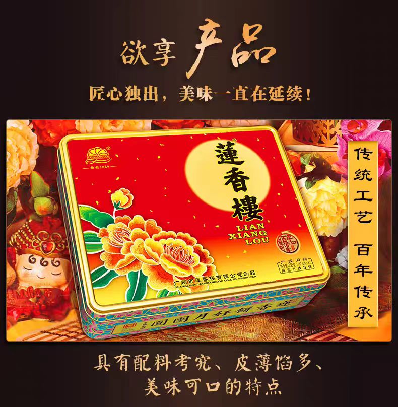 莲香楼经典款 | 纯正豆沙月饼187.5g*4粒铁盒装