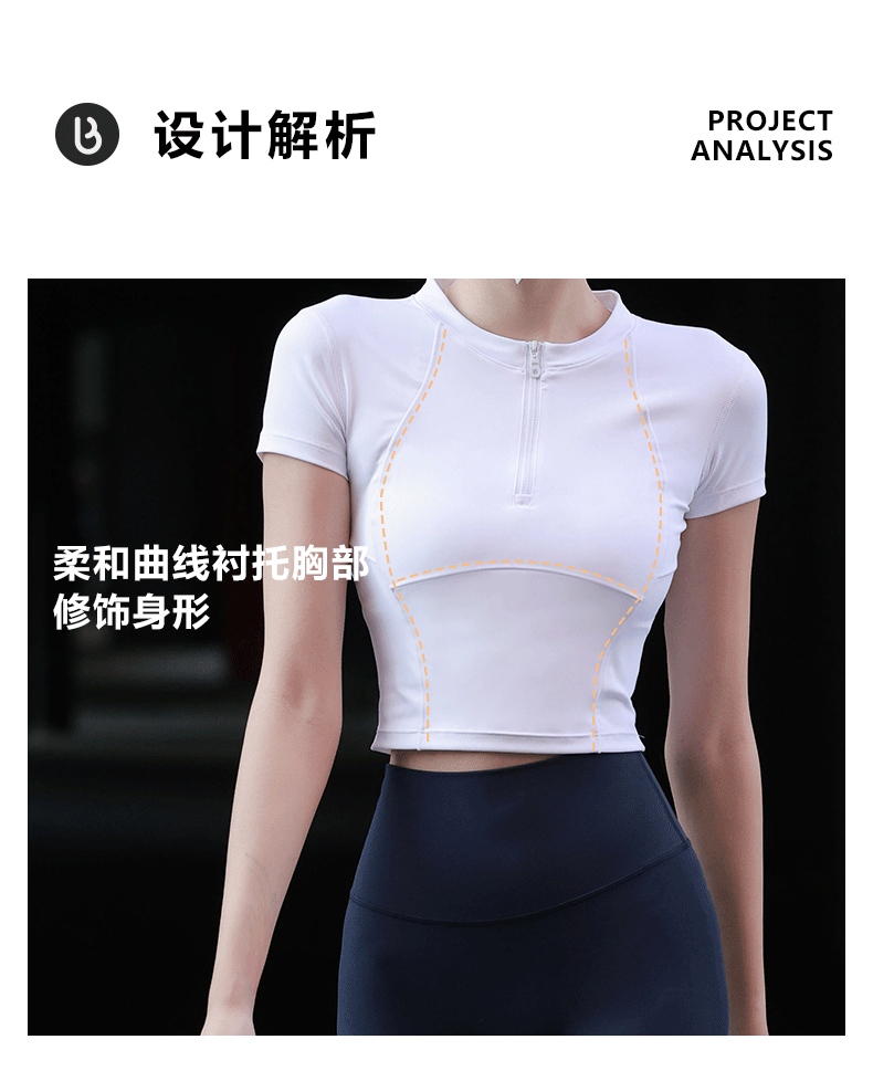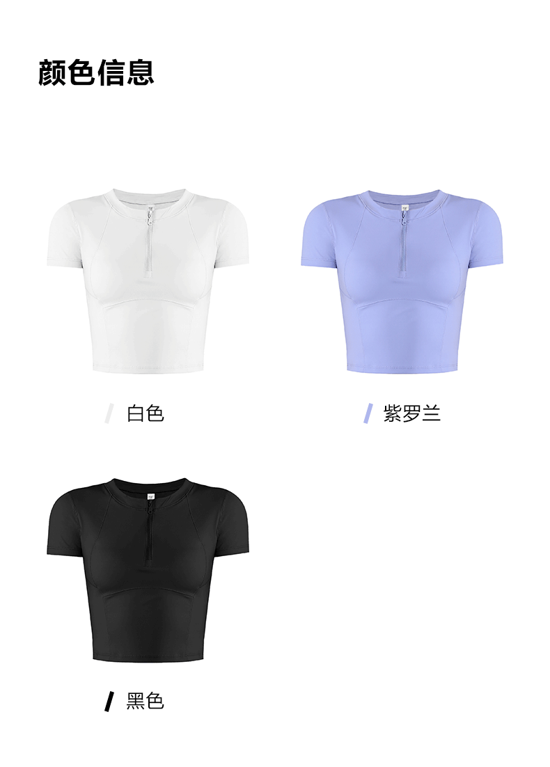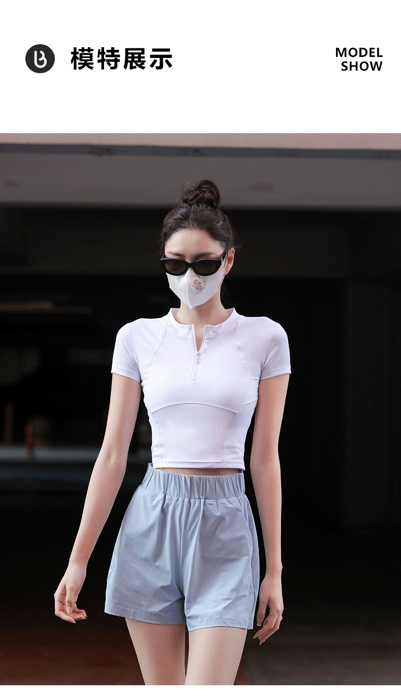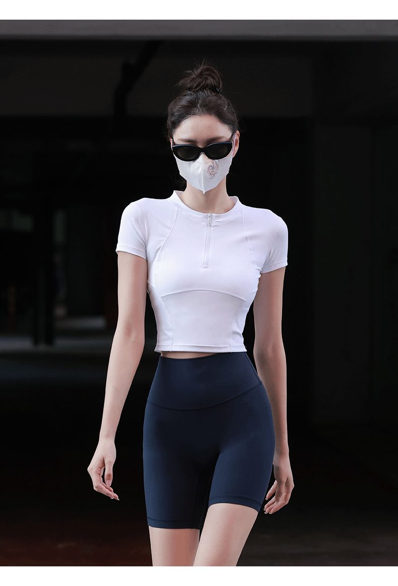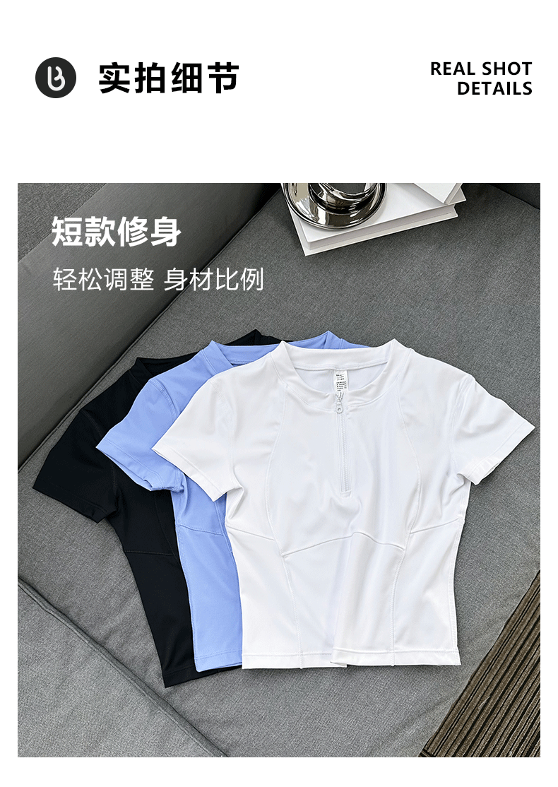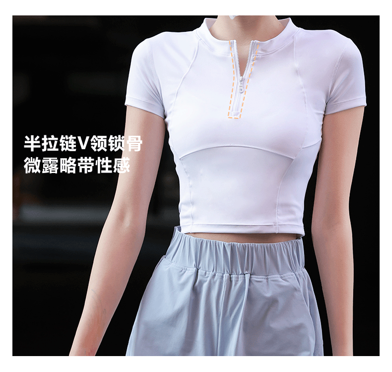 beemen运动上衣女夏季半拉链修身短款显瘦健身跑步瑜伽服速干t恤设计感