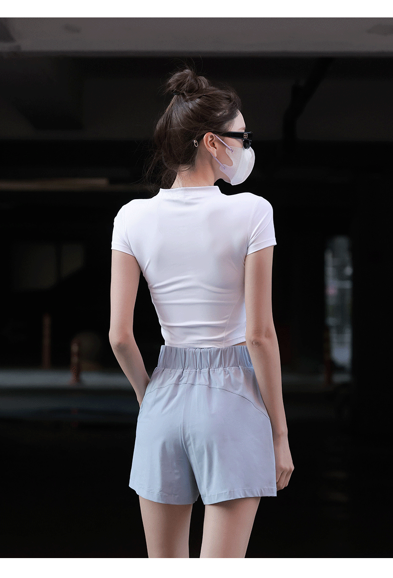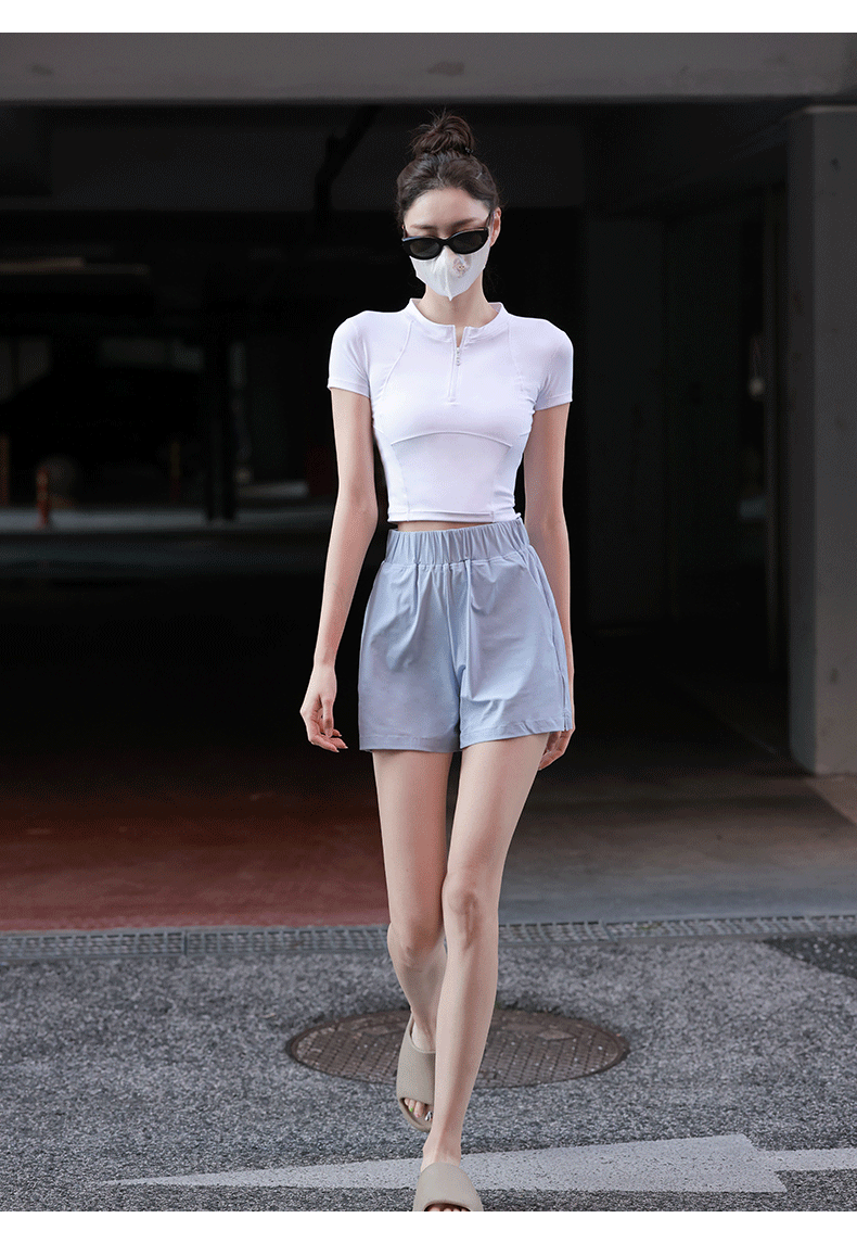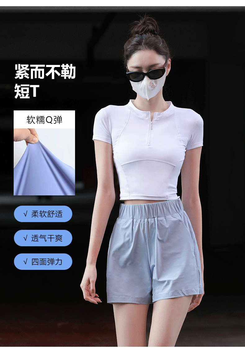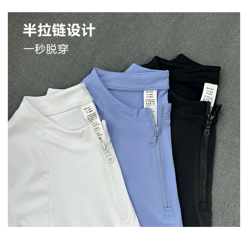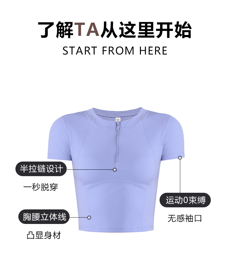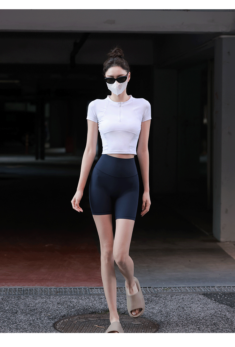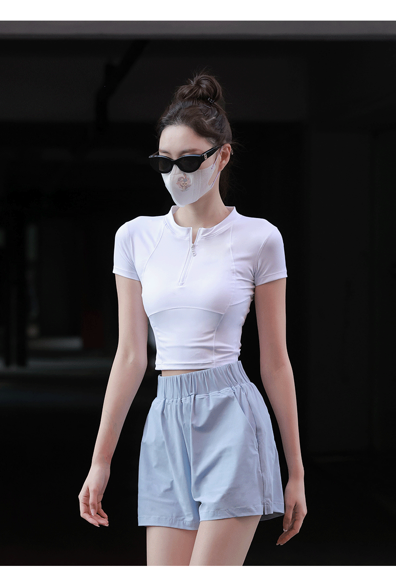 beemen运动上衣女夏季半拉链修身短款显瘦健身跑步瑜伽服速干t恤设计感