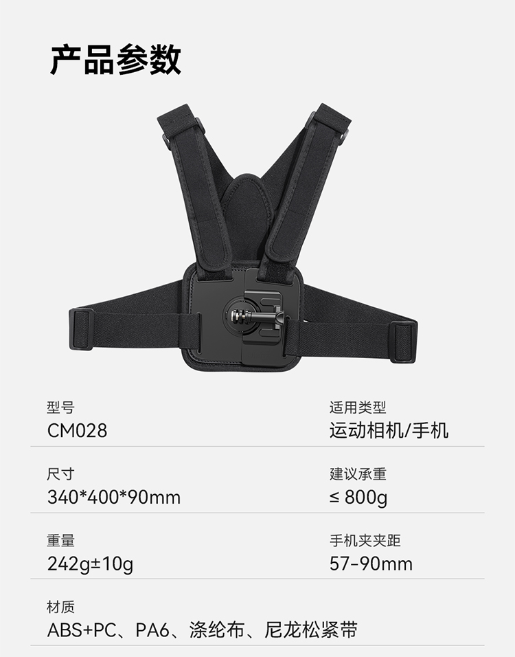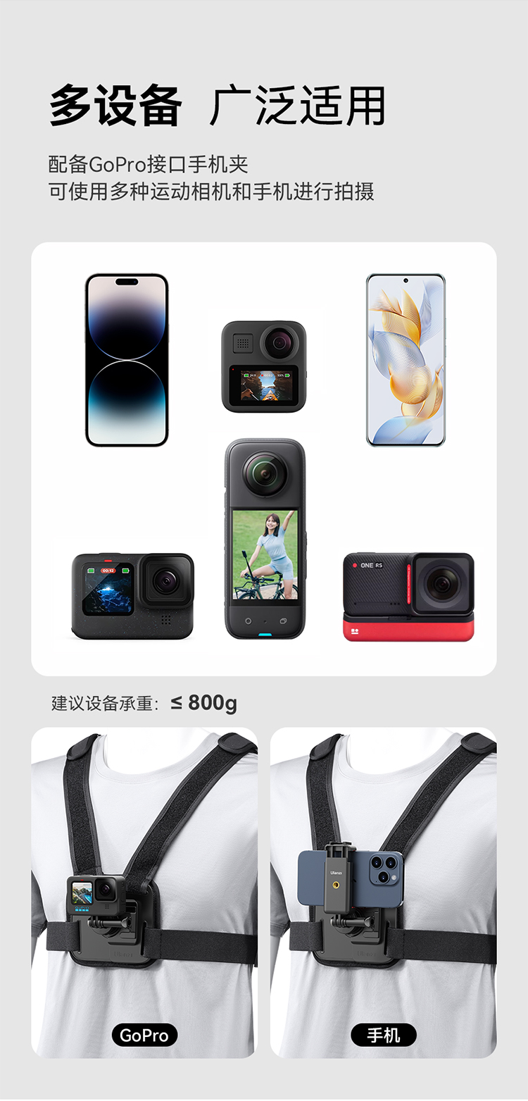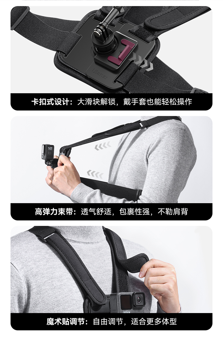 Ulanzi优篮子CM028 胸带支架手机固定支架第一人称户外钓鱼路亚骑行拍摄神器